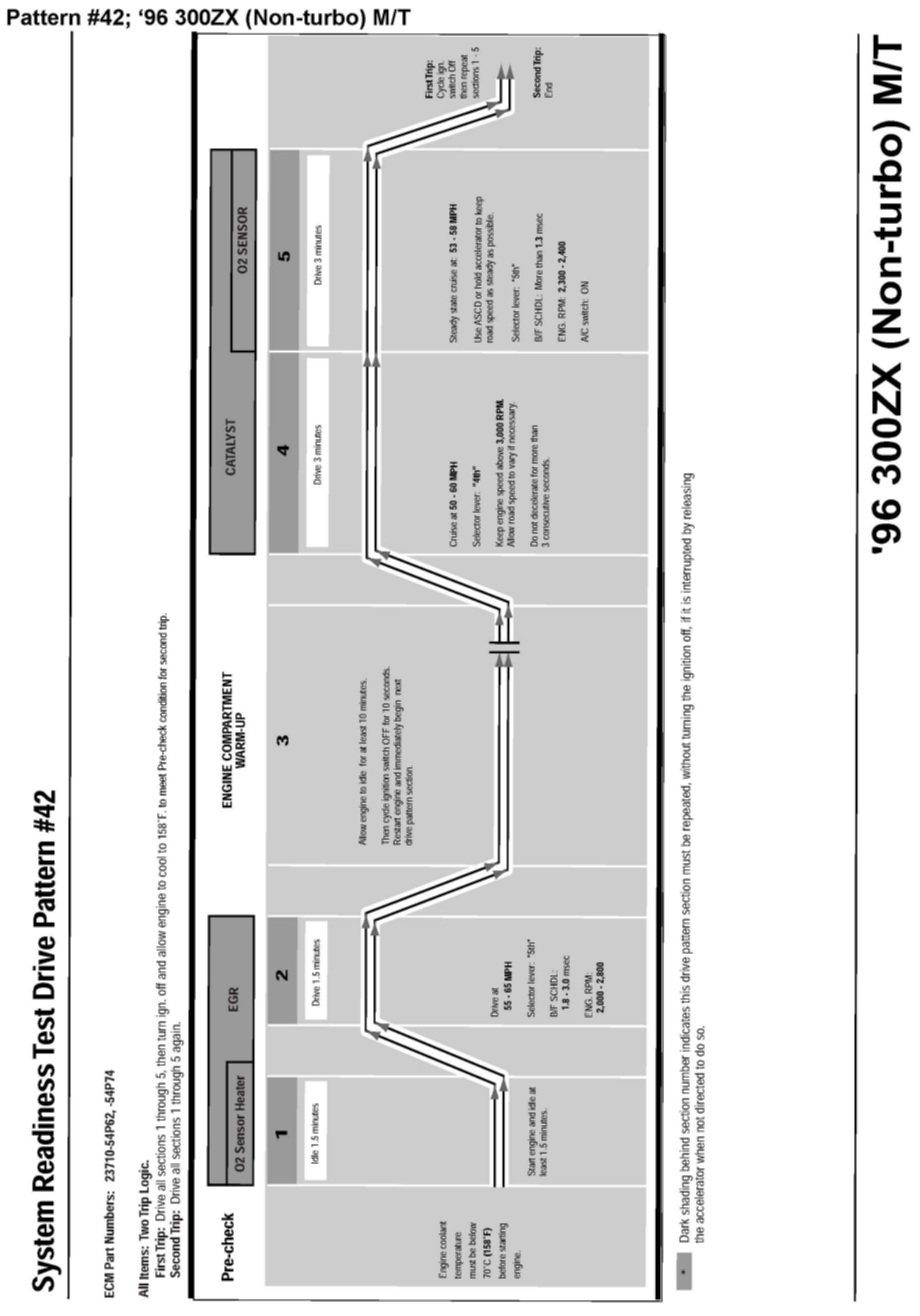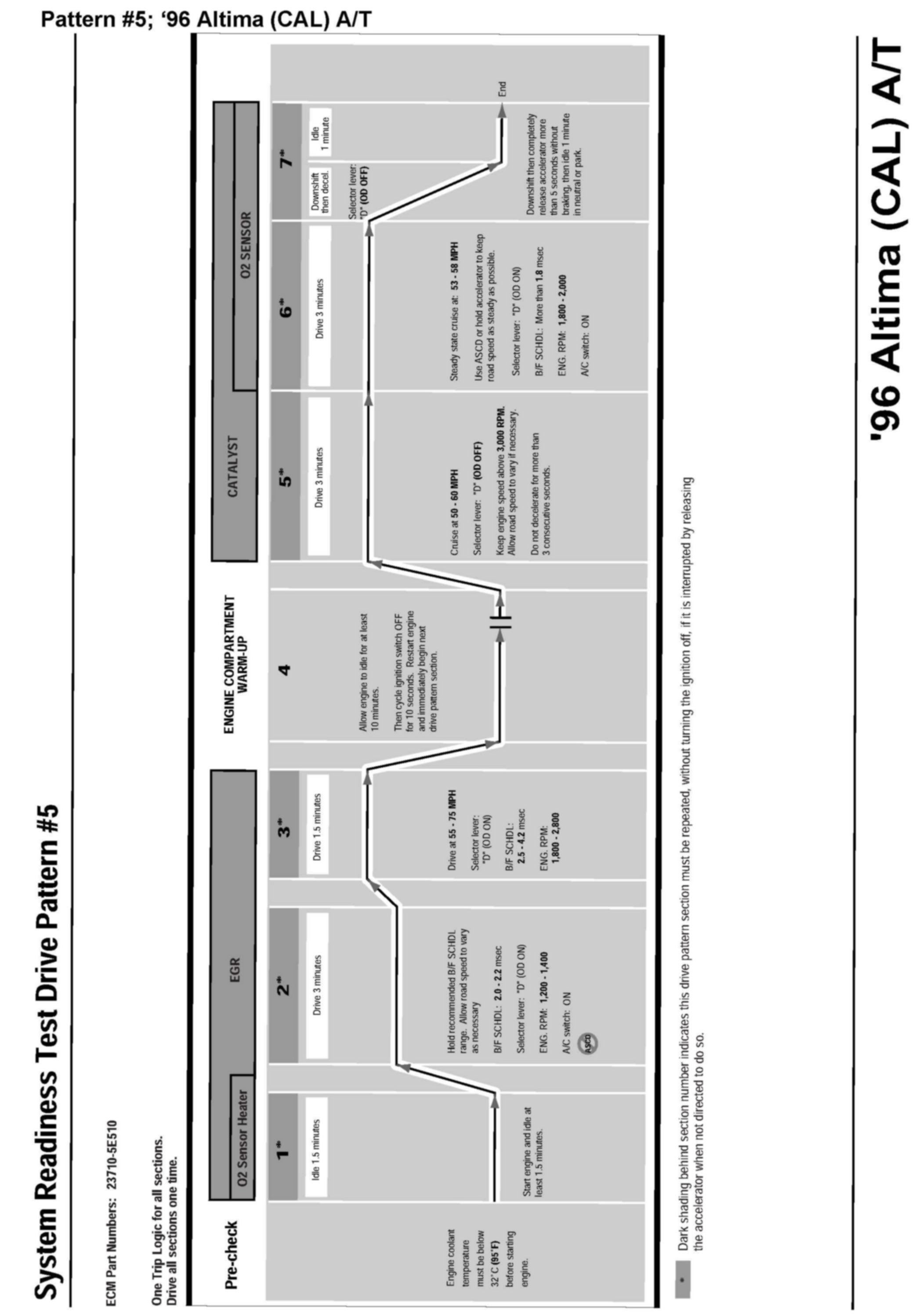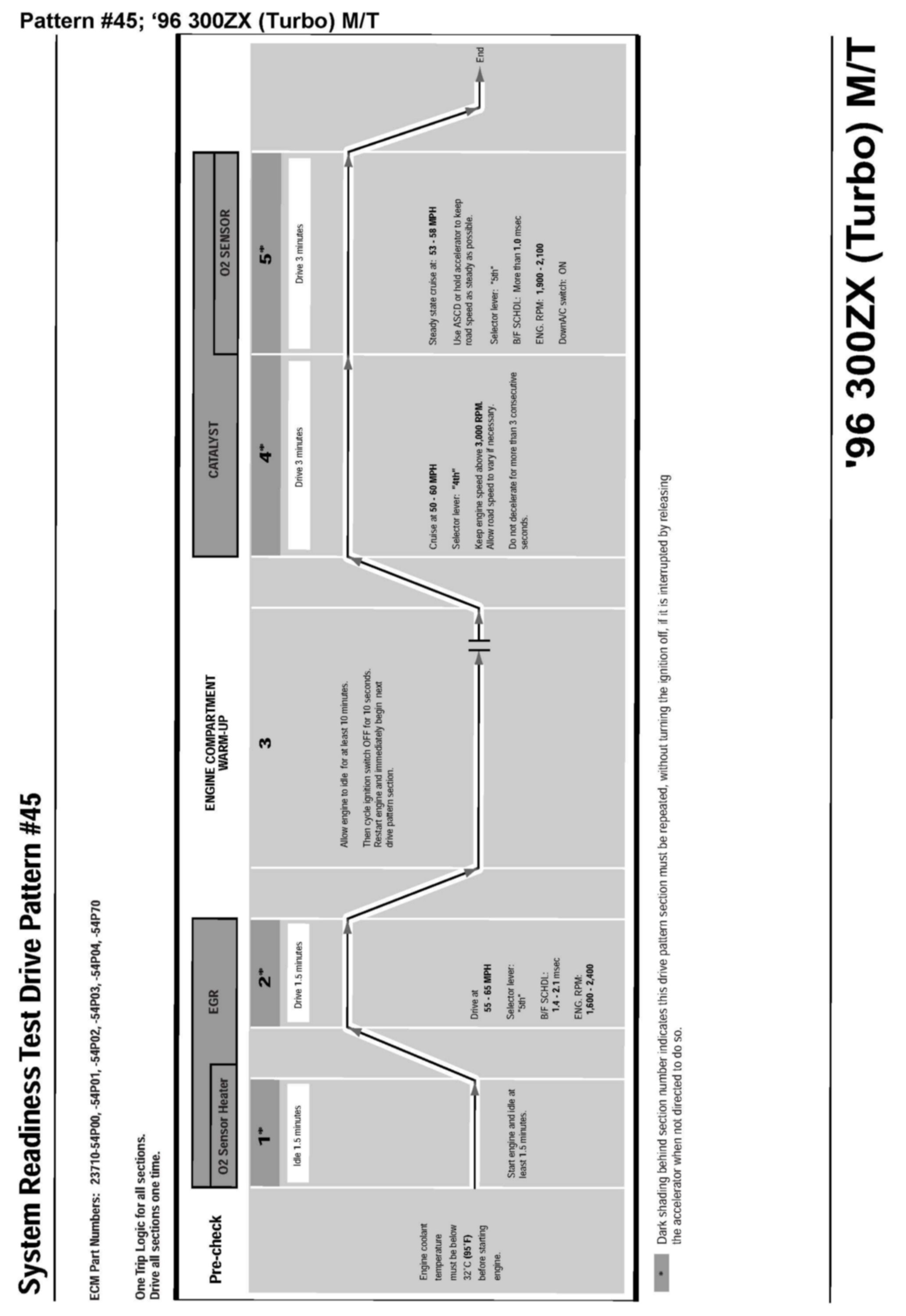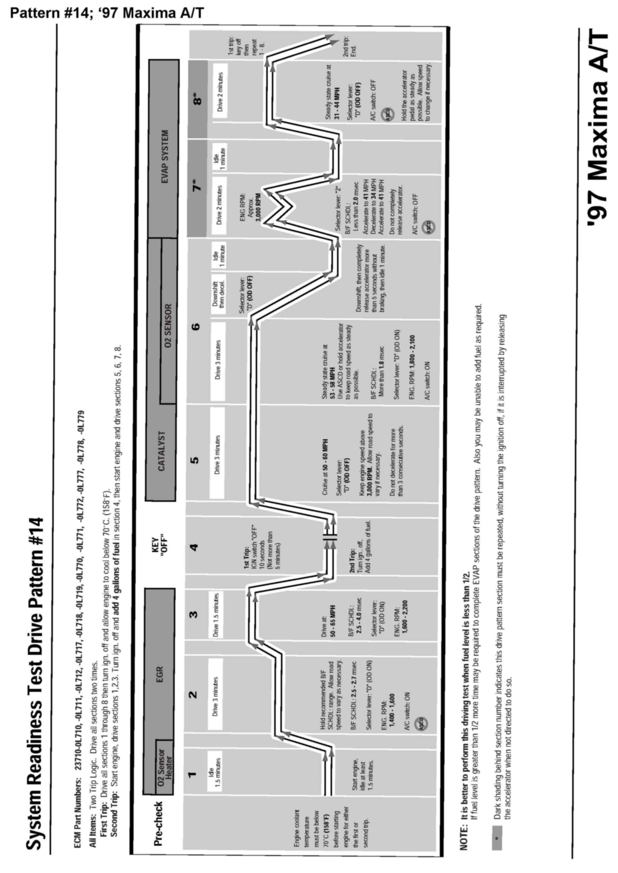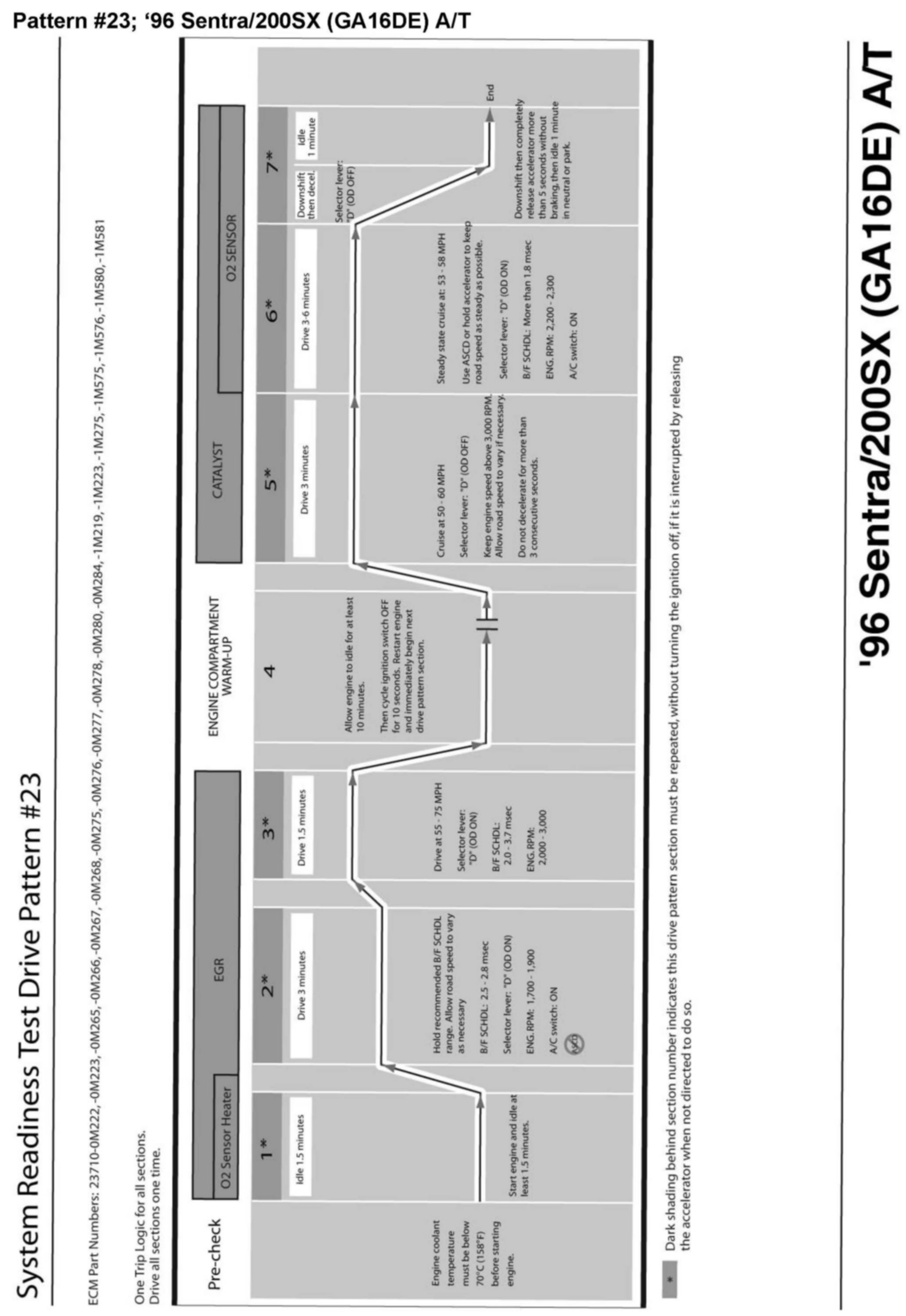 Home >> Nissan-Datsun >> 2002 >> Sentra SE-R L4-2.5L (QR25DE) >> Repair and Diagnosis >> Powertrain Management >> Computers and Control Systems >> Engine Control Module >> Technical Service Bulletins >> All Technical Service Bulletins >> Emissions - System Readiness Test (SRT) Drive Patterns >> System Readiness Test Drive Patterns