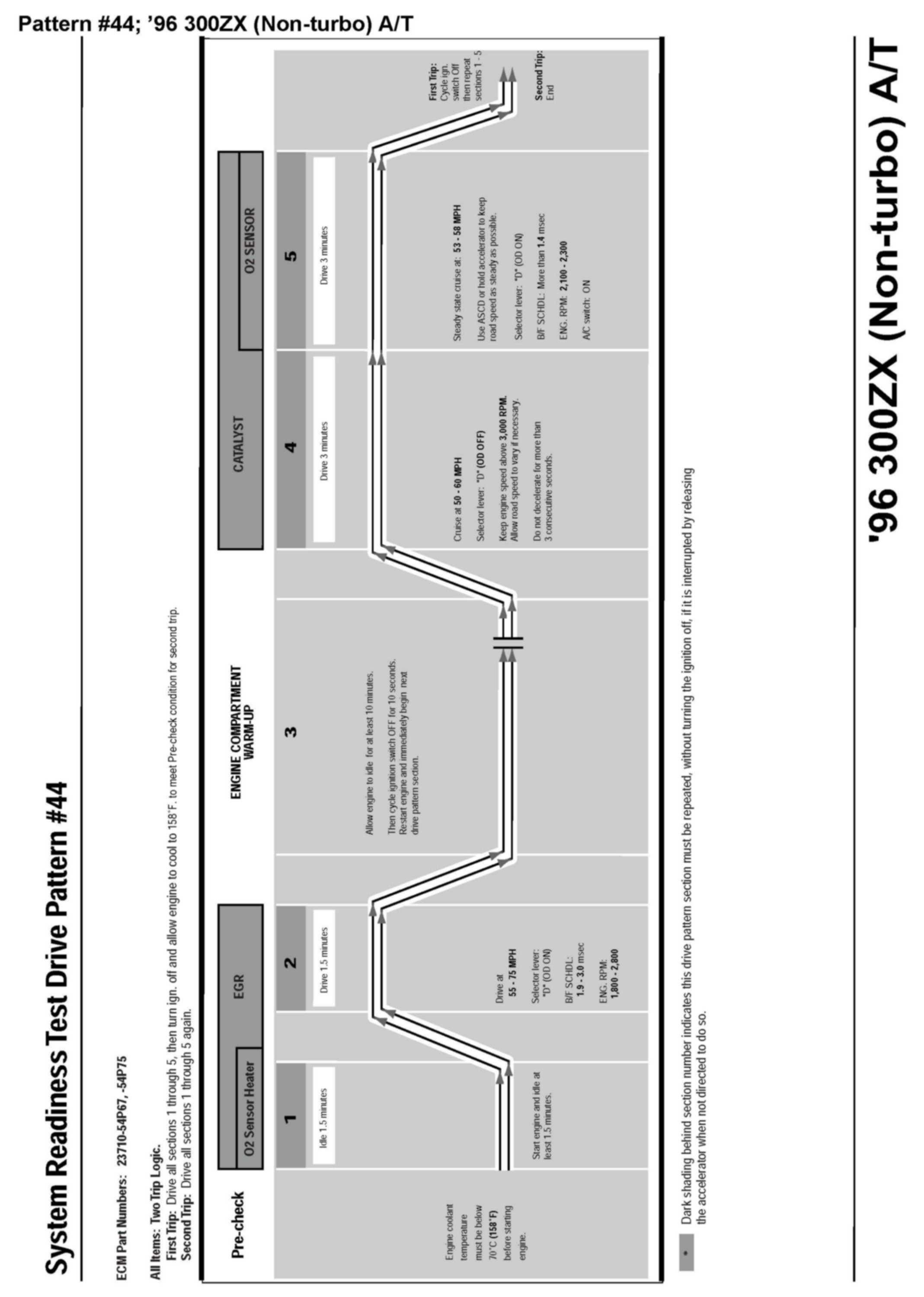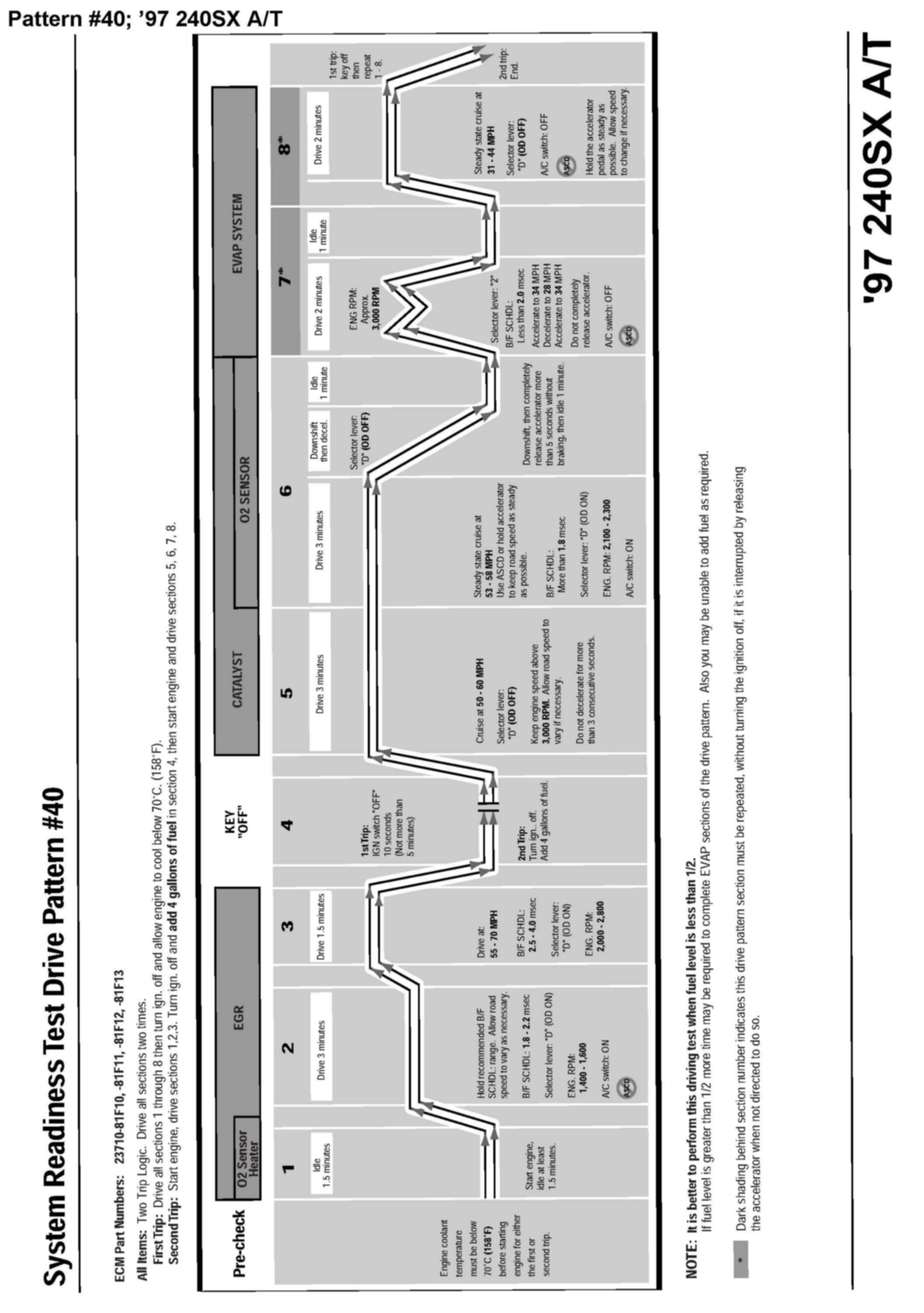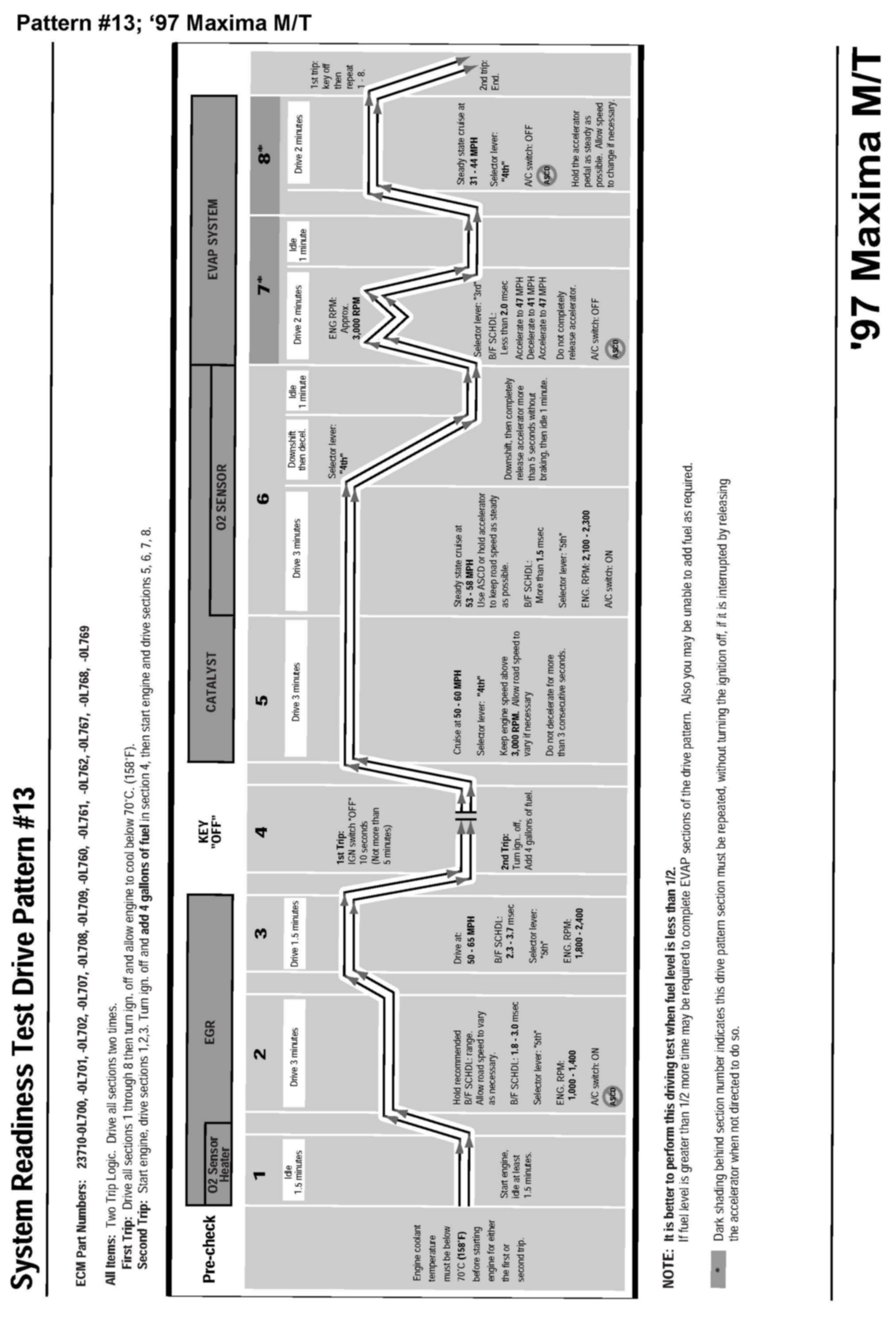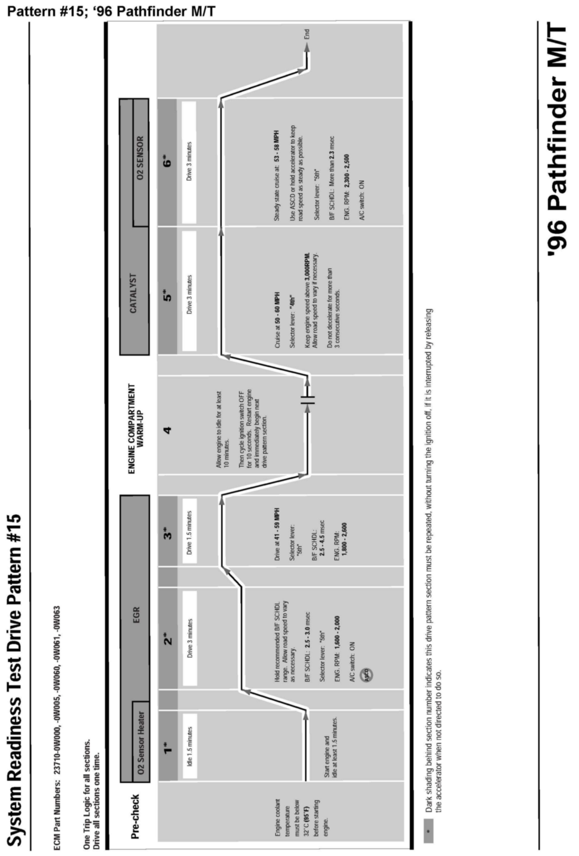 Home >> Nissan-Datsun >> 2002 >> Sentra SE-R L4-2.5L (QR25DE) >> Repair and Diagnosis >> Powertrain Management >> Computers and Control Systems >> Engine Control Module >> Technical Service Bulletins >> All Technical Service Bulletins >> Emissions - System Readiness Test (SRT) Drive Patterns >> System Readiness Test Drive Patterns