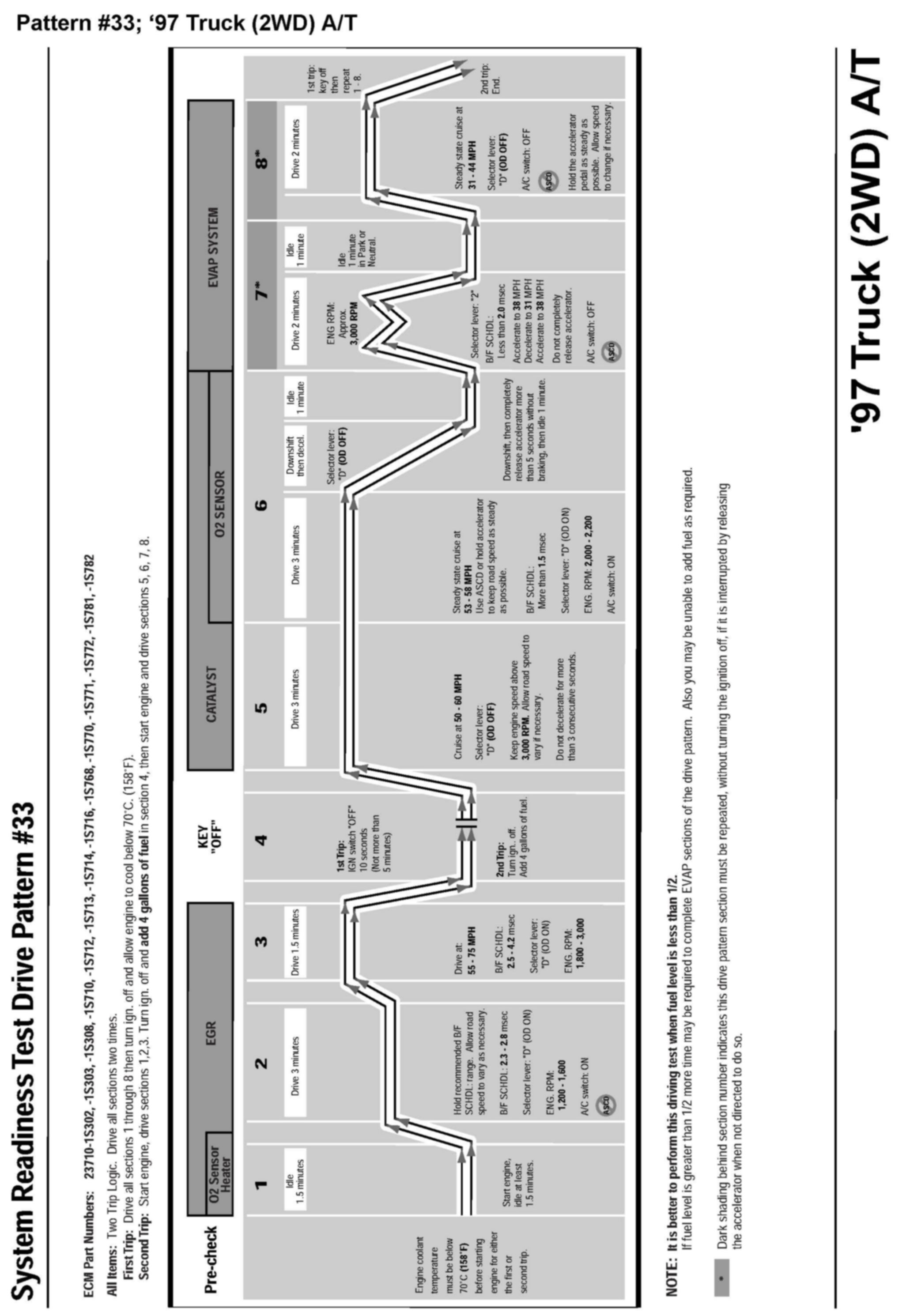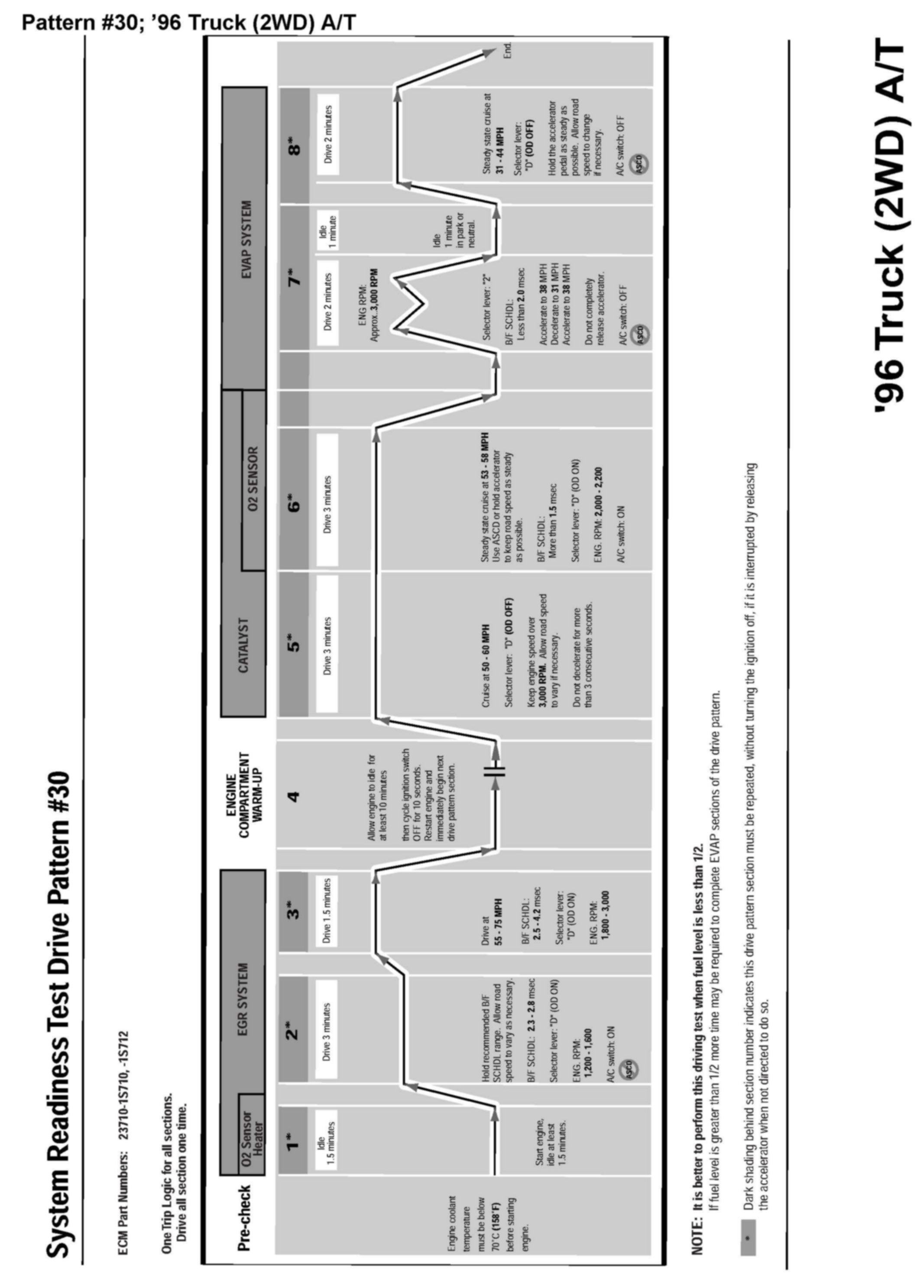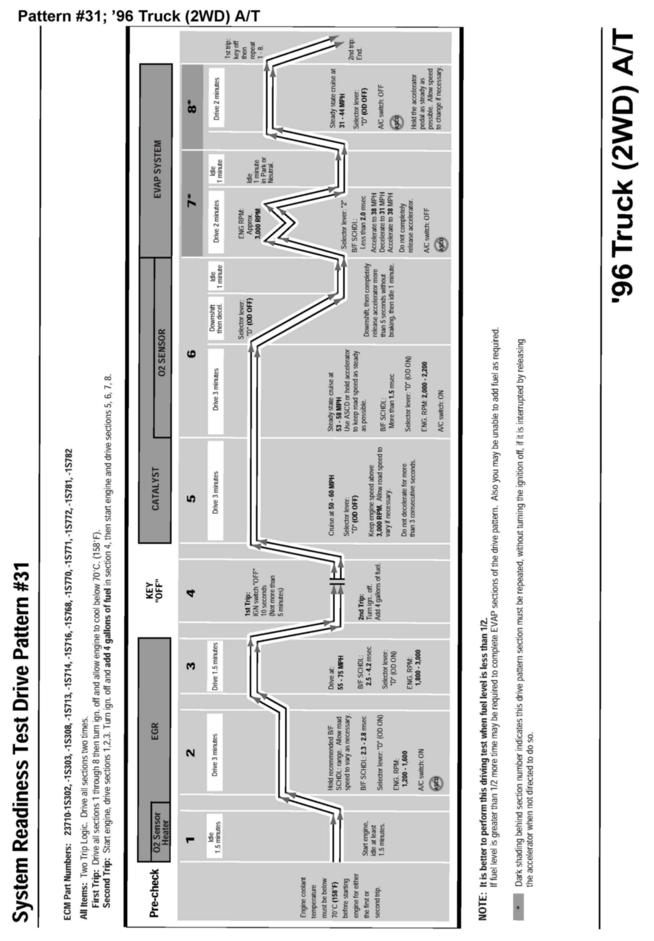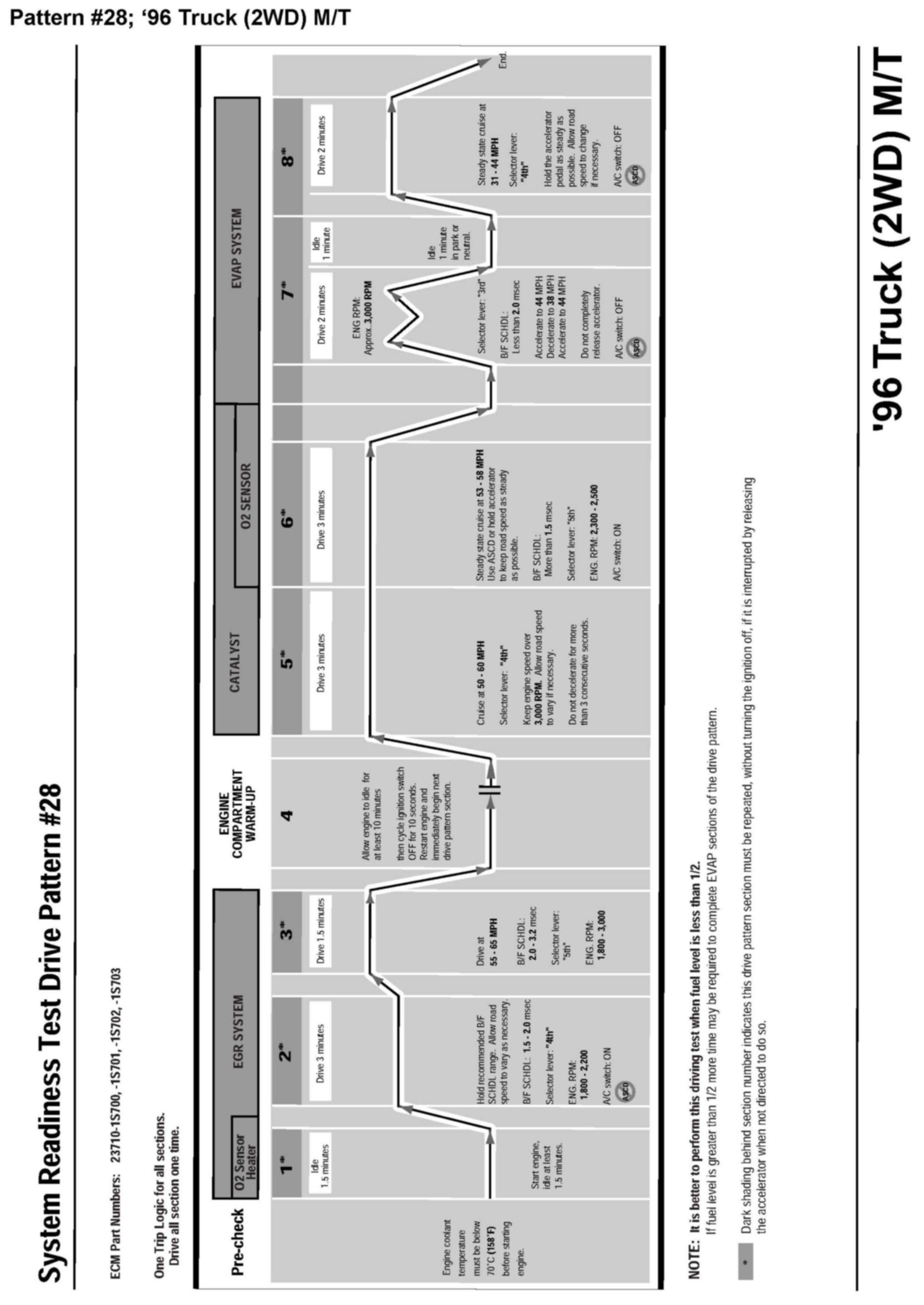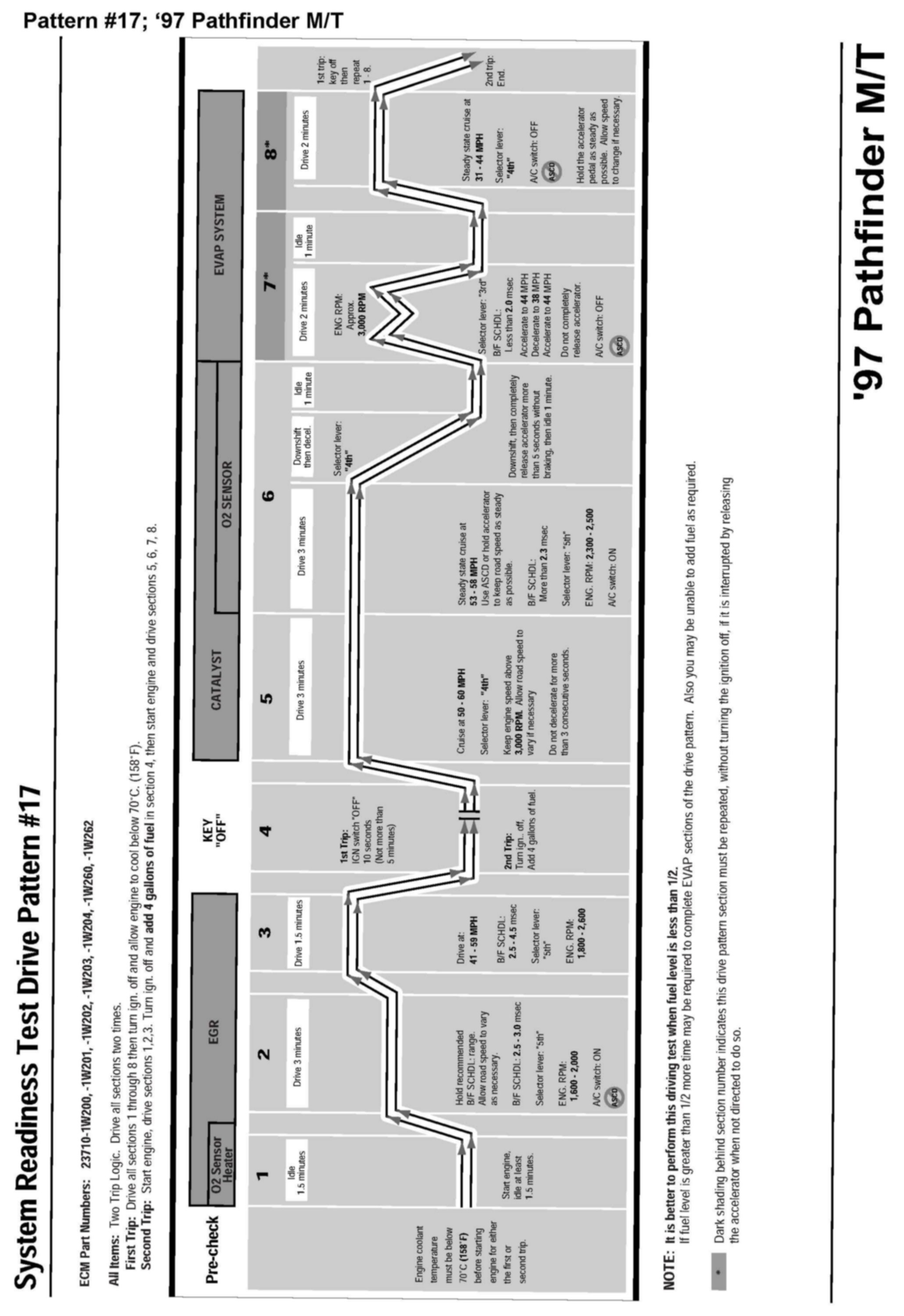 Home >> Nissan-Datsun >> 2002 >> Sentra SE-R L4-2.5L (QR25DE) >> Repair and Diagnosis >> Powertrain Management >> Computers and Control Systems >> Engine Control Module >> Technical Service Bulletins >> All Technical Service Bulletins >> Emissions - System Readiness Test (SRT) Drive Patterns >> System Readiness Test Drive Patterns