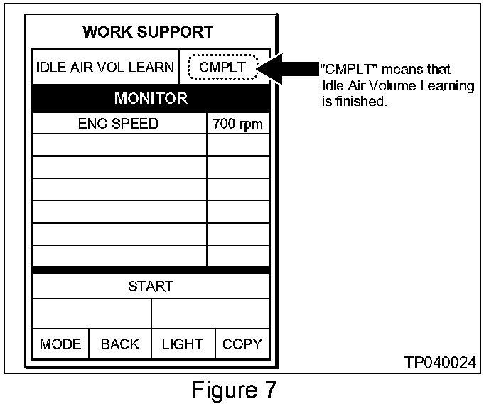 e. Press [START] on the "WORK SUPPORT" screen to begin the Idle Air Volume Learning (IAVL) procedure. See Figure 5.