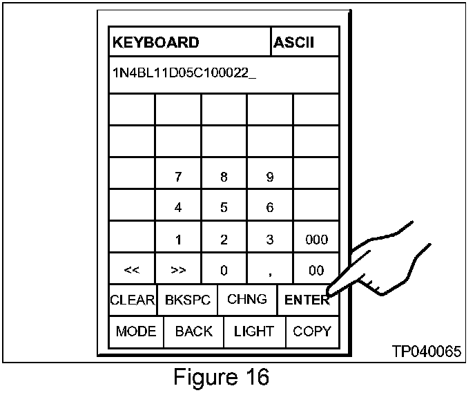 i. Once the entire VIN is entered (a second time), select [ENTER] on the "Keyboard" screen. See Figure 16.