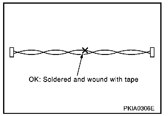 CAN SYSTEM- Solder the repaired parts, and wrap with tape. [Frays of twisted line must be within 110 mm (4.33 in)]