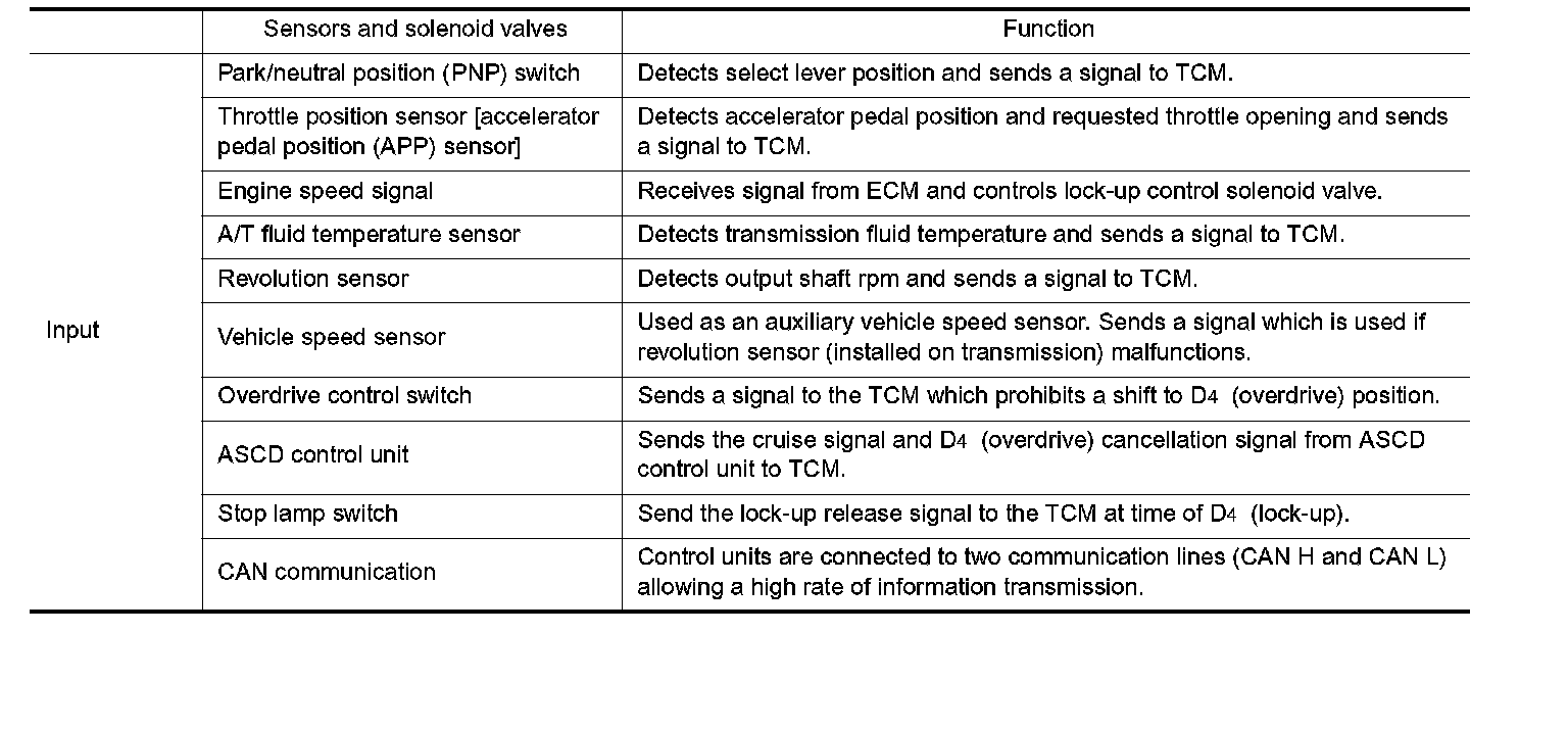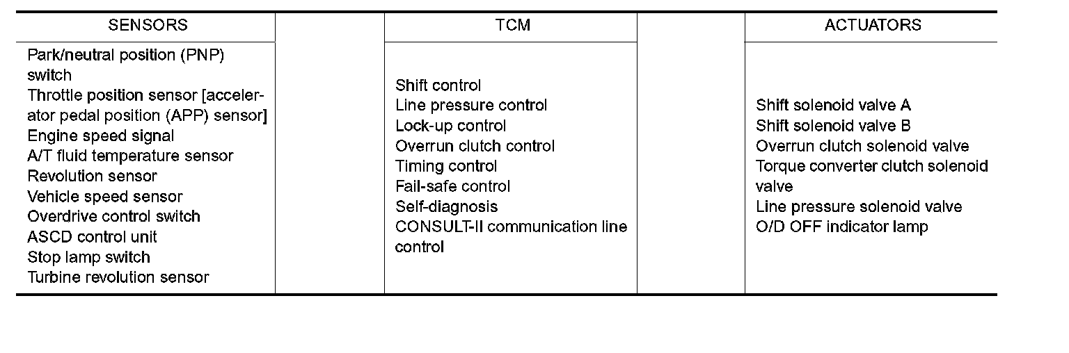Home >> Nissan-Datsun >> 2002 >> Sentra SE-R L4-2.5L (QR25DE) >> Repair and Diagnosis >> Powertrain Management >> Transmission Control Systems >> Description and Operation >> Overall System >> Control System