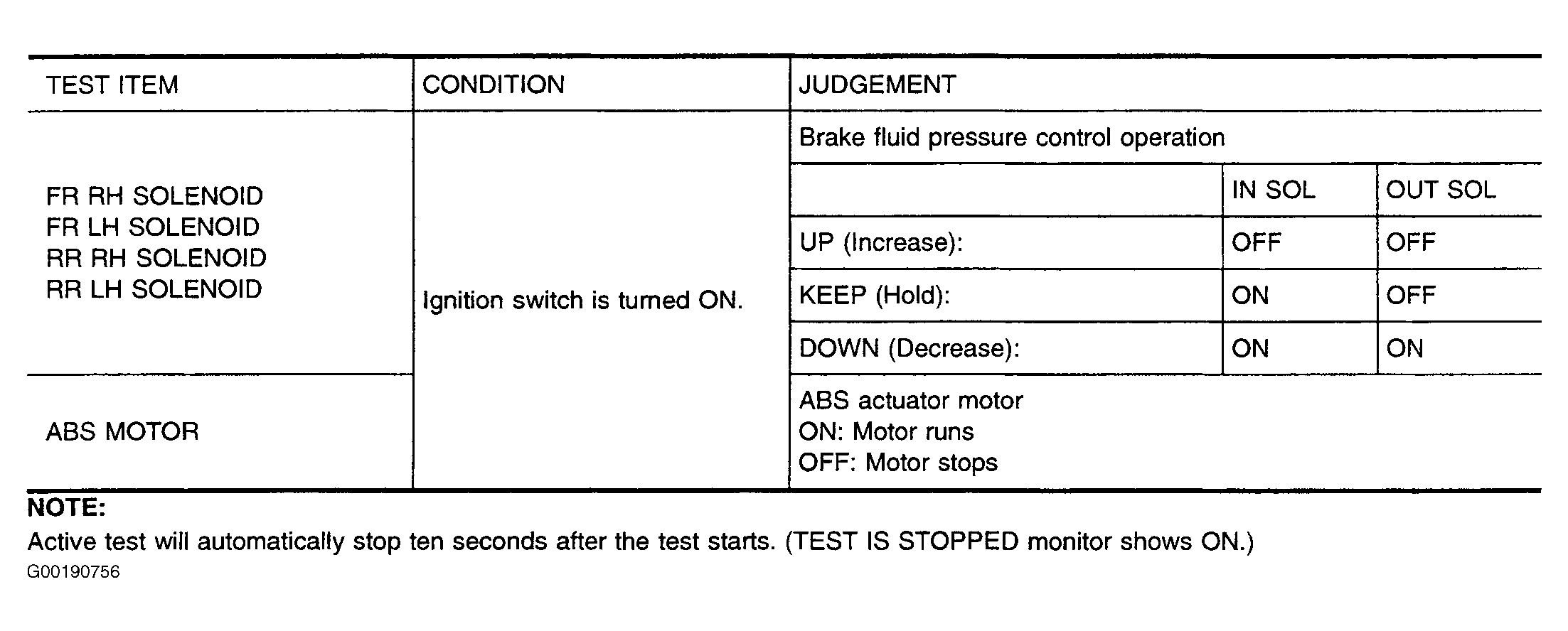 NOTE: When conducting Active test, vehicle must be stationary. When ABS warning lamp stays on, never conduct Active test.