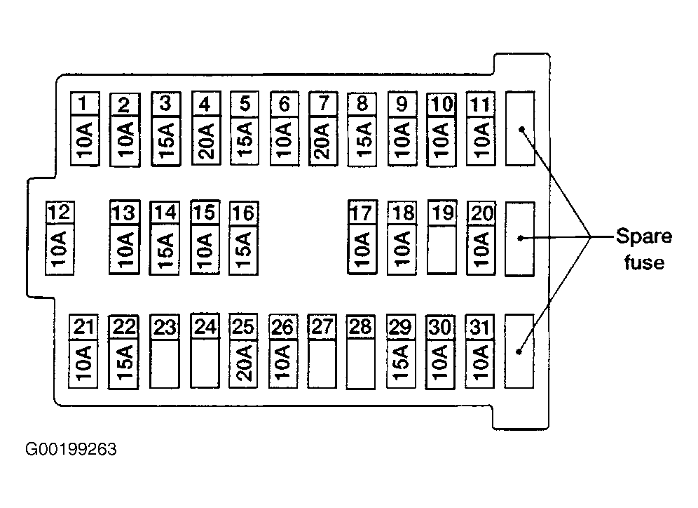 - Turn ignition on, with engine off. If ABS warning lamp illuminates, go to next step. If ABS warning lamp does not illuminate, check ABS warning lamp fuse No. 30 (10-amp), bulb and warning lamp circuit. ABS warning lamp fuse No. 30 (10-amp) is located in the fuse block on lower left side of instrument panel in passenger compartment. See Fig 1