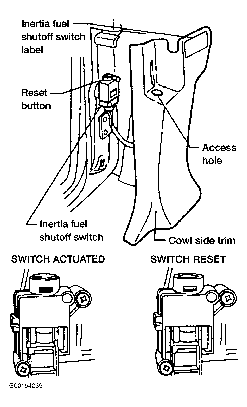 - Check inertia fuel shut-off switch. See INERTIA FUEL SHUTOFF SWITCH .