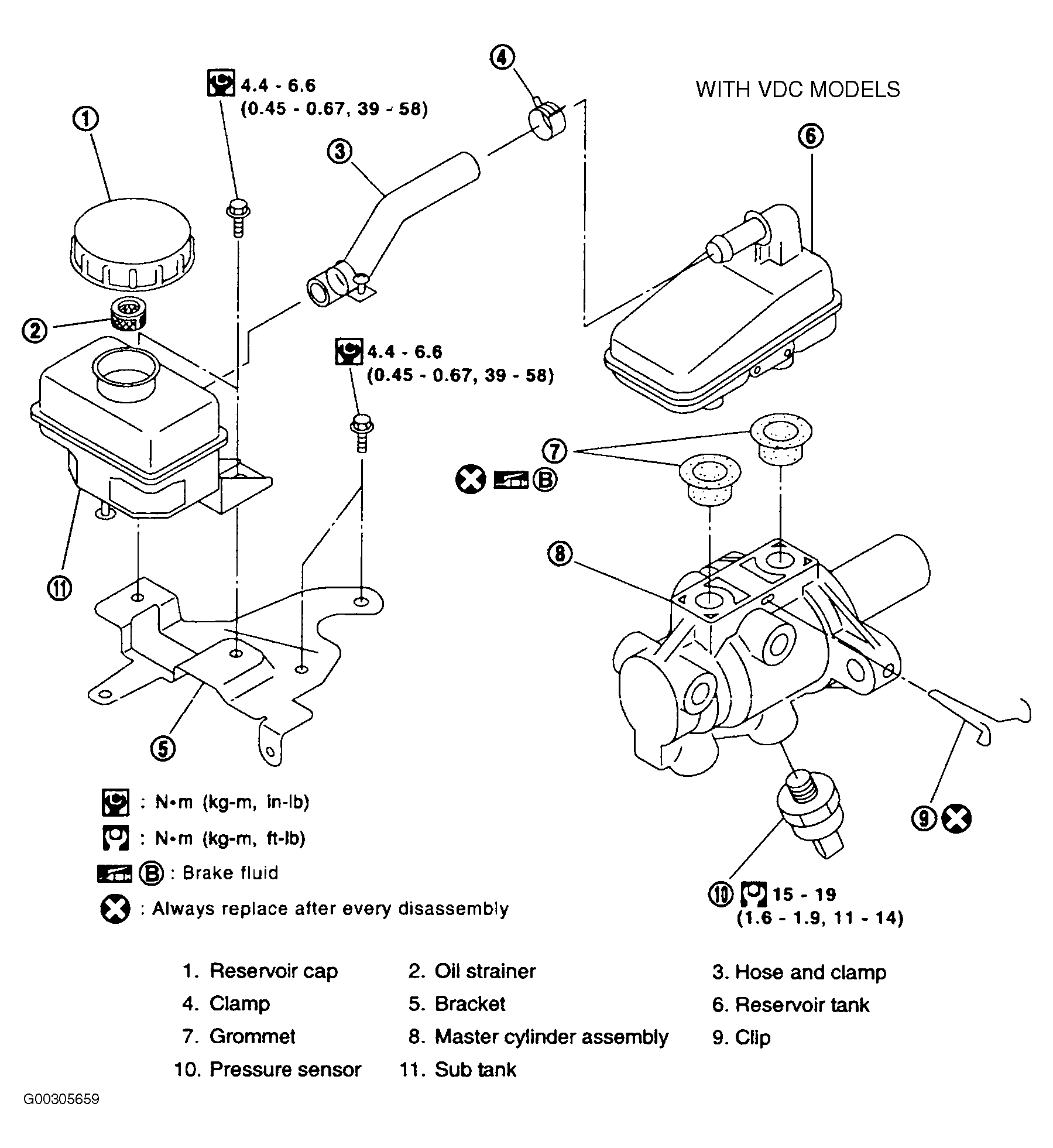 Fig 1: Exploded View Of Brake Master Cylinder Components (With VDC Model)