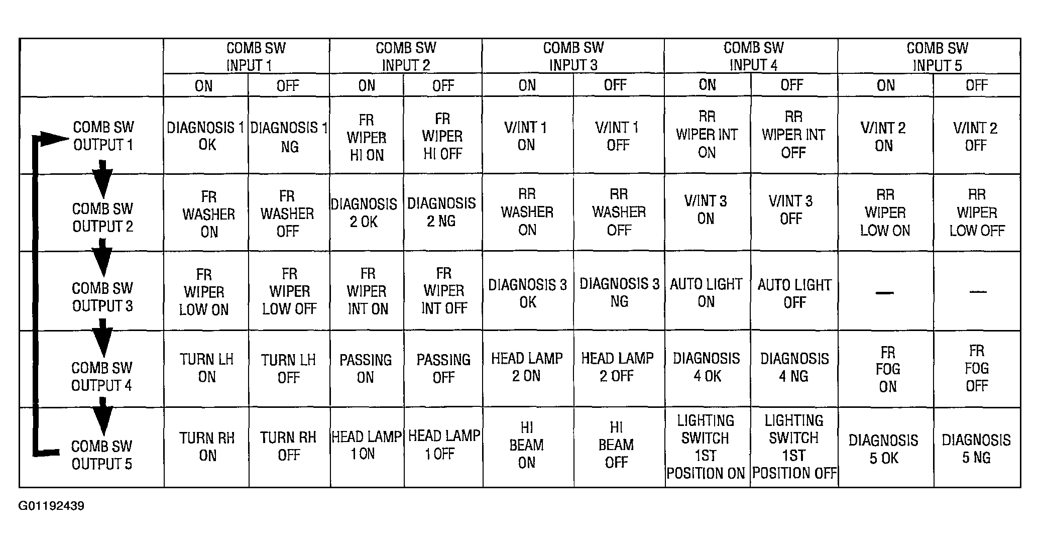 BCM reads operation status of combination switch using combinations shown in Fig 1.