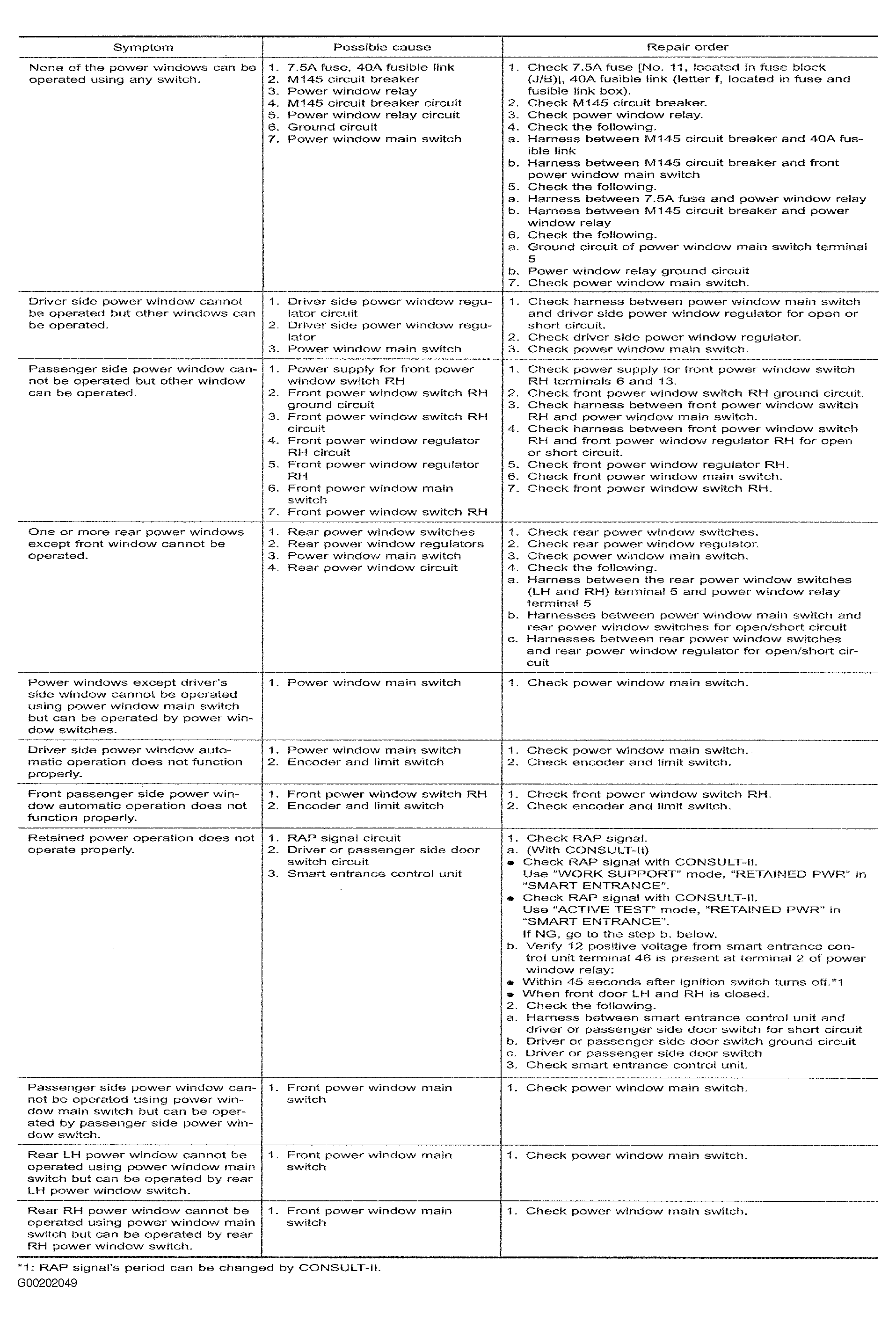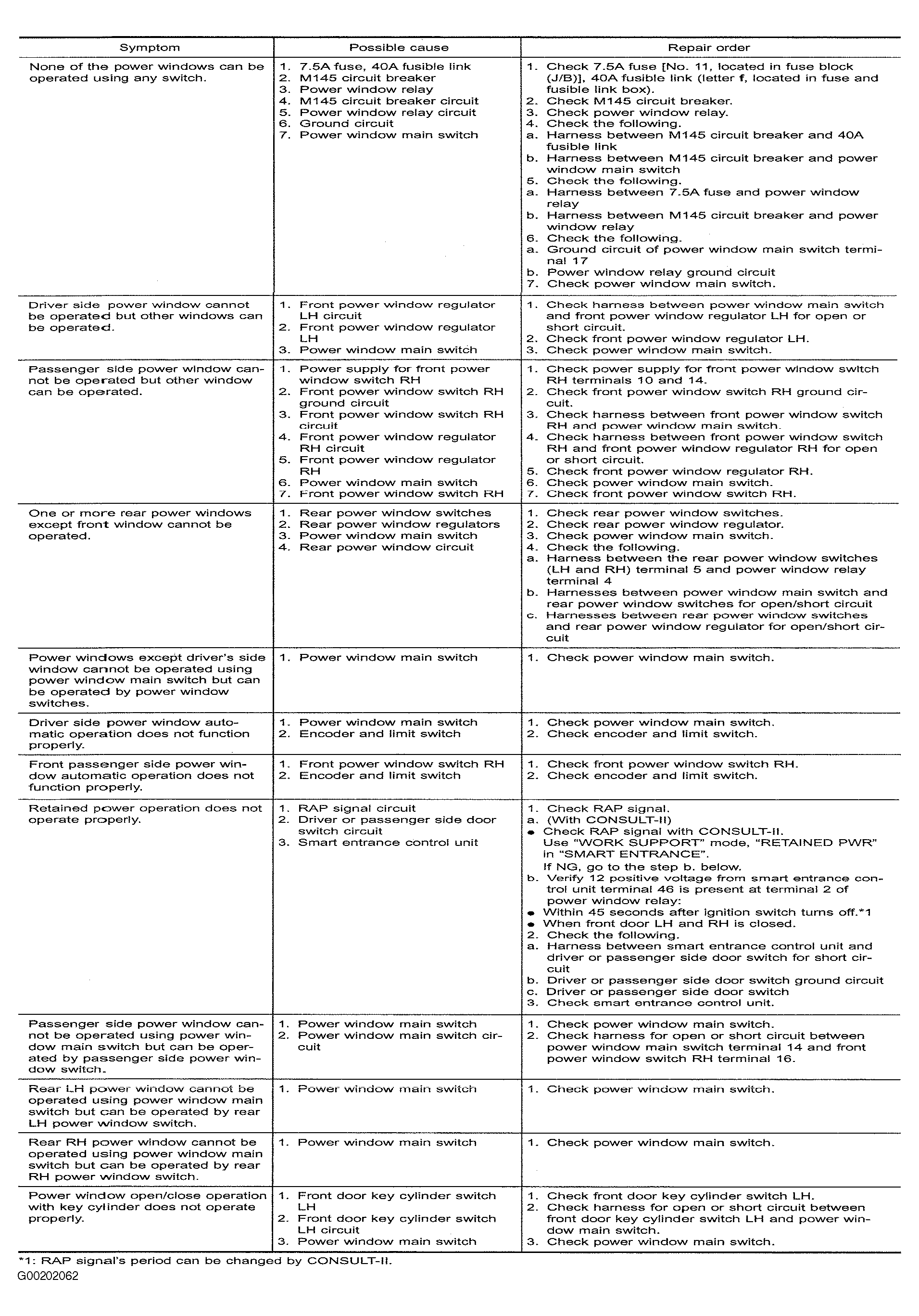 Home >> Nissan-Datsun >> 2002 >> Sentra SE-R, Standard >> Repair and Diagnosis >> External Pages >> Different car >> Section 143 (Power Windows) >> Trouble Shooting >> Notes