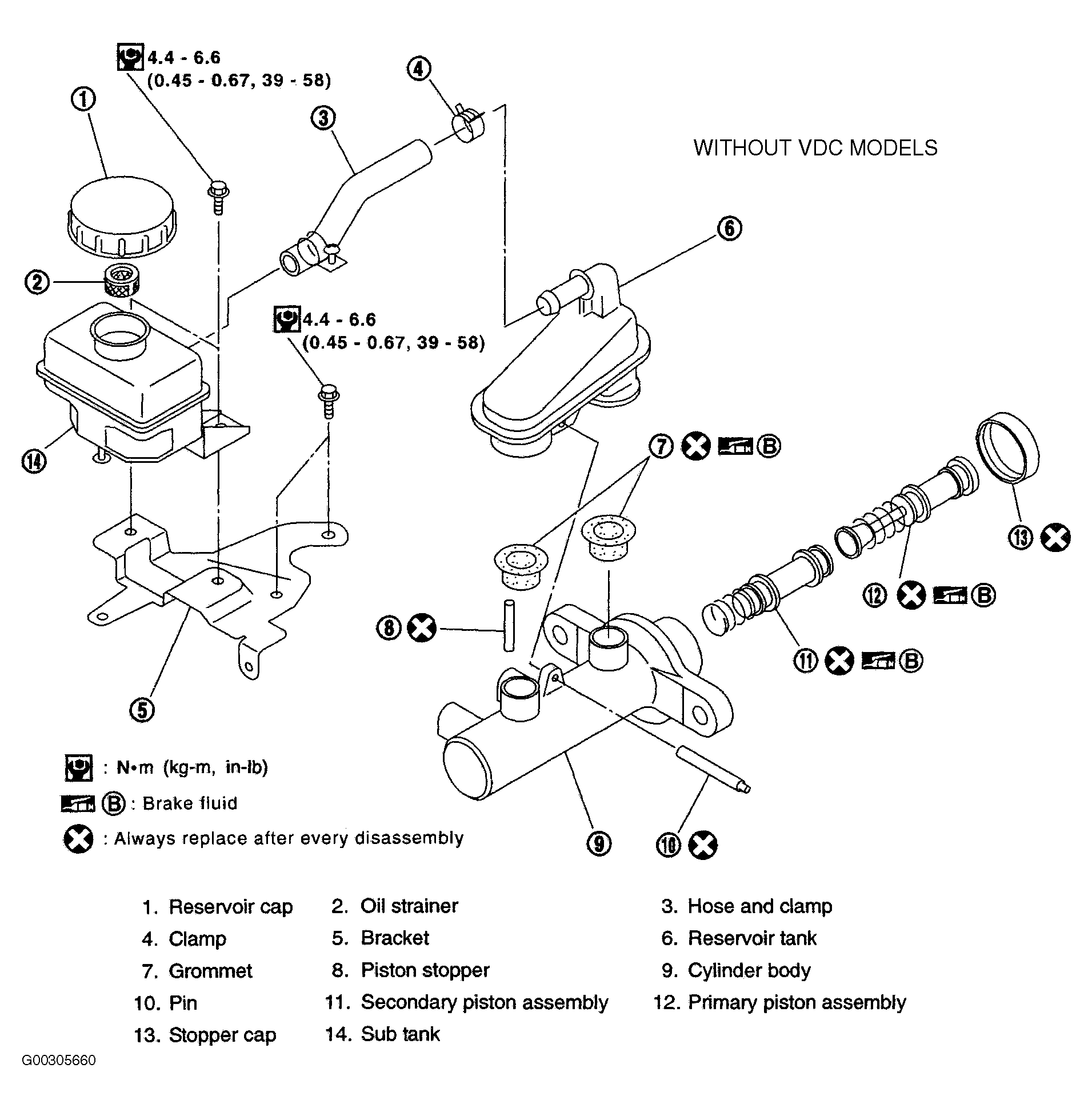 Fig 1: Exploded View Of Brake Master Cylinder Components (Without VDC Model)