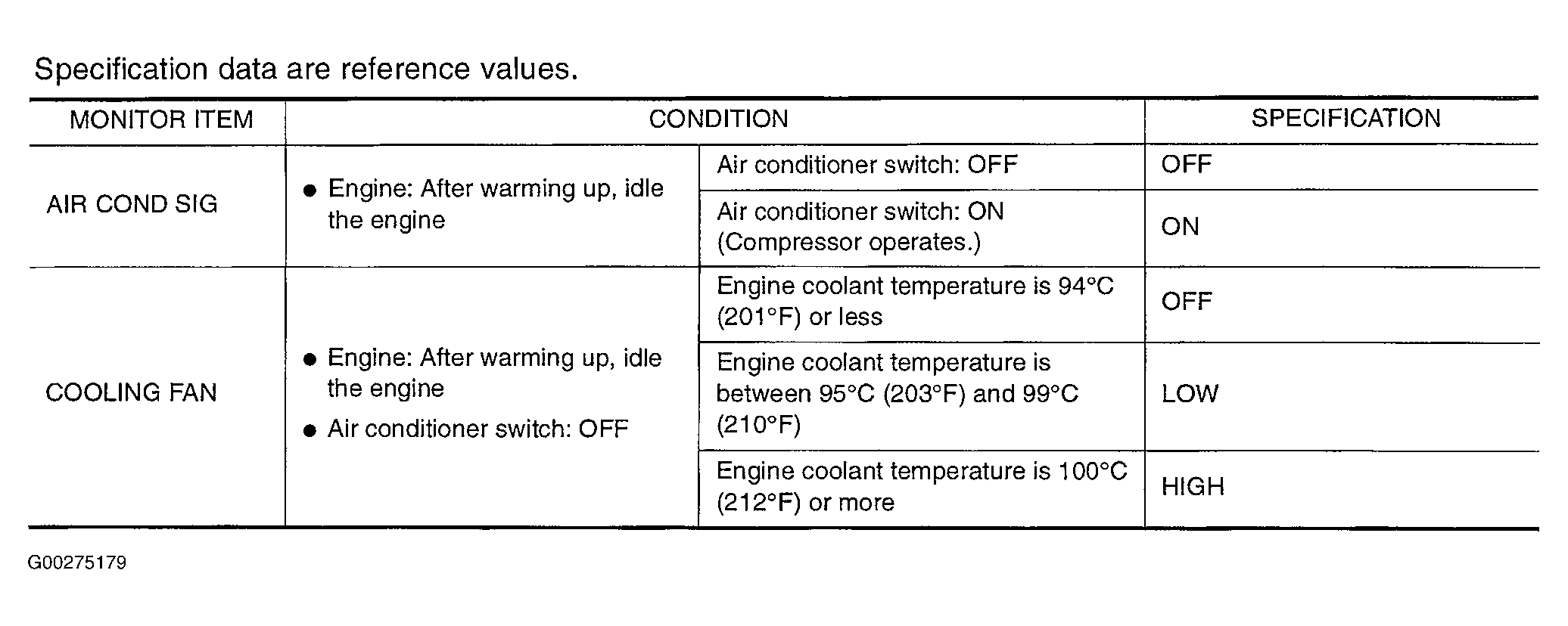 For CONSULT-II reference value in data monitor mode, see