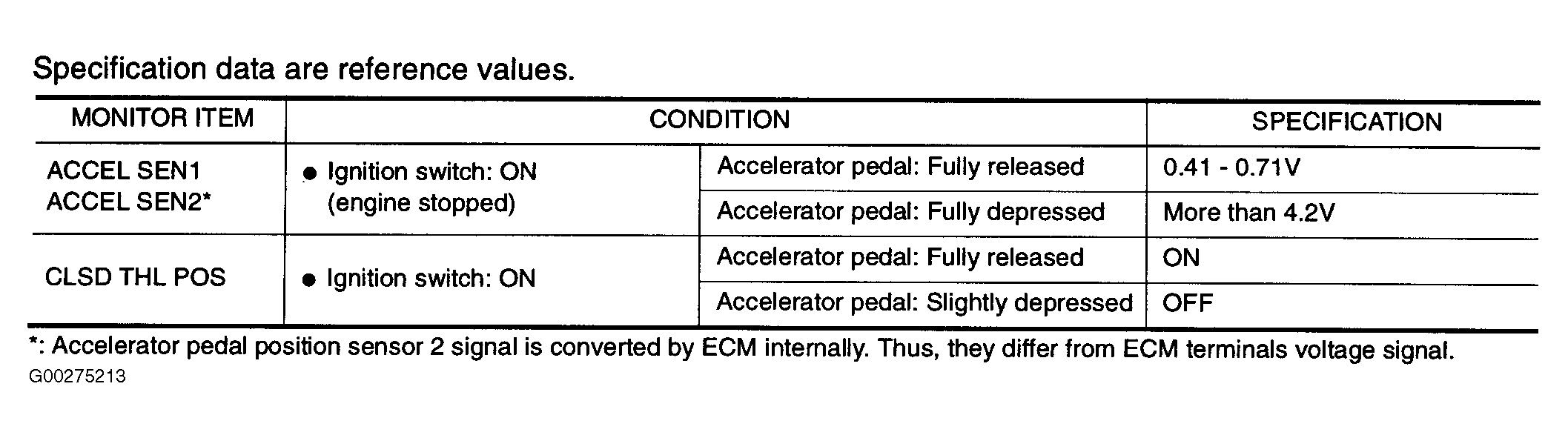 For CONSULT-II reference value in data monitor mode, see