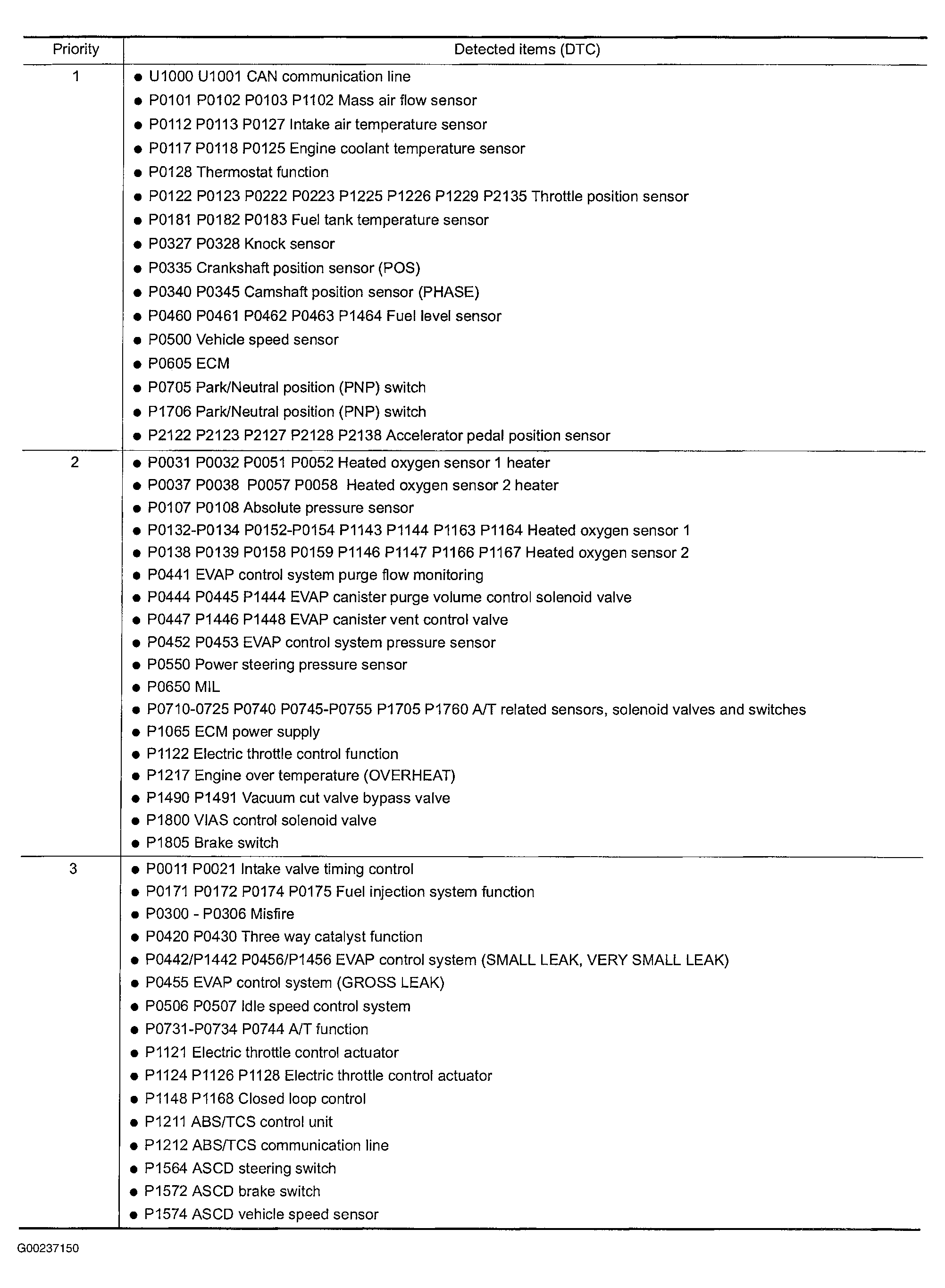 If some DTC's are displayed at the same time, perform inspections one by one based on priority, see Fig 1.