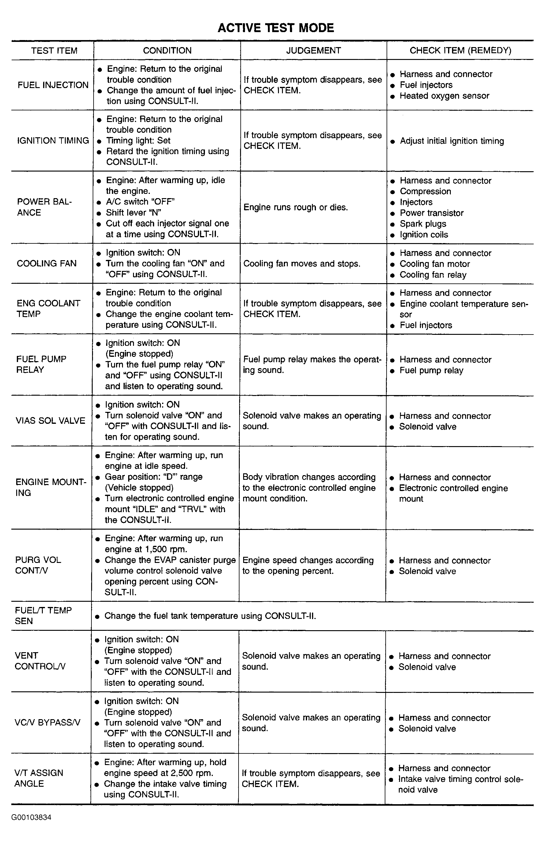 For ACTIVE TEST mode descriptions, see