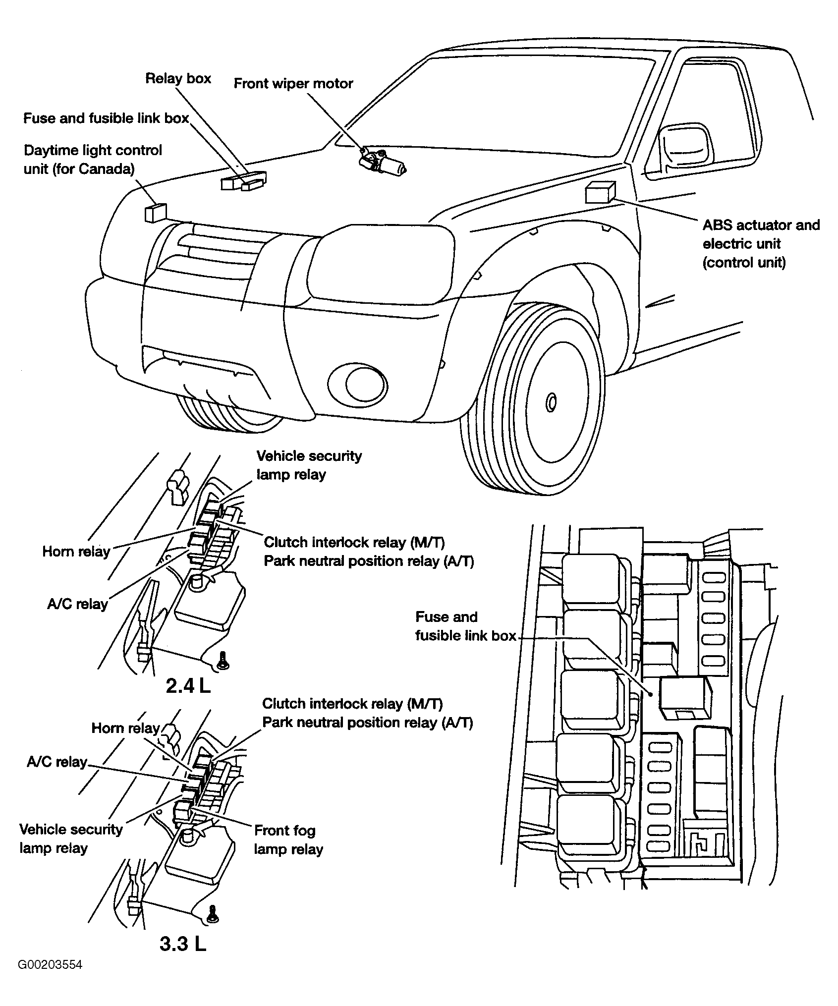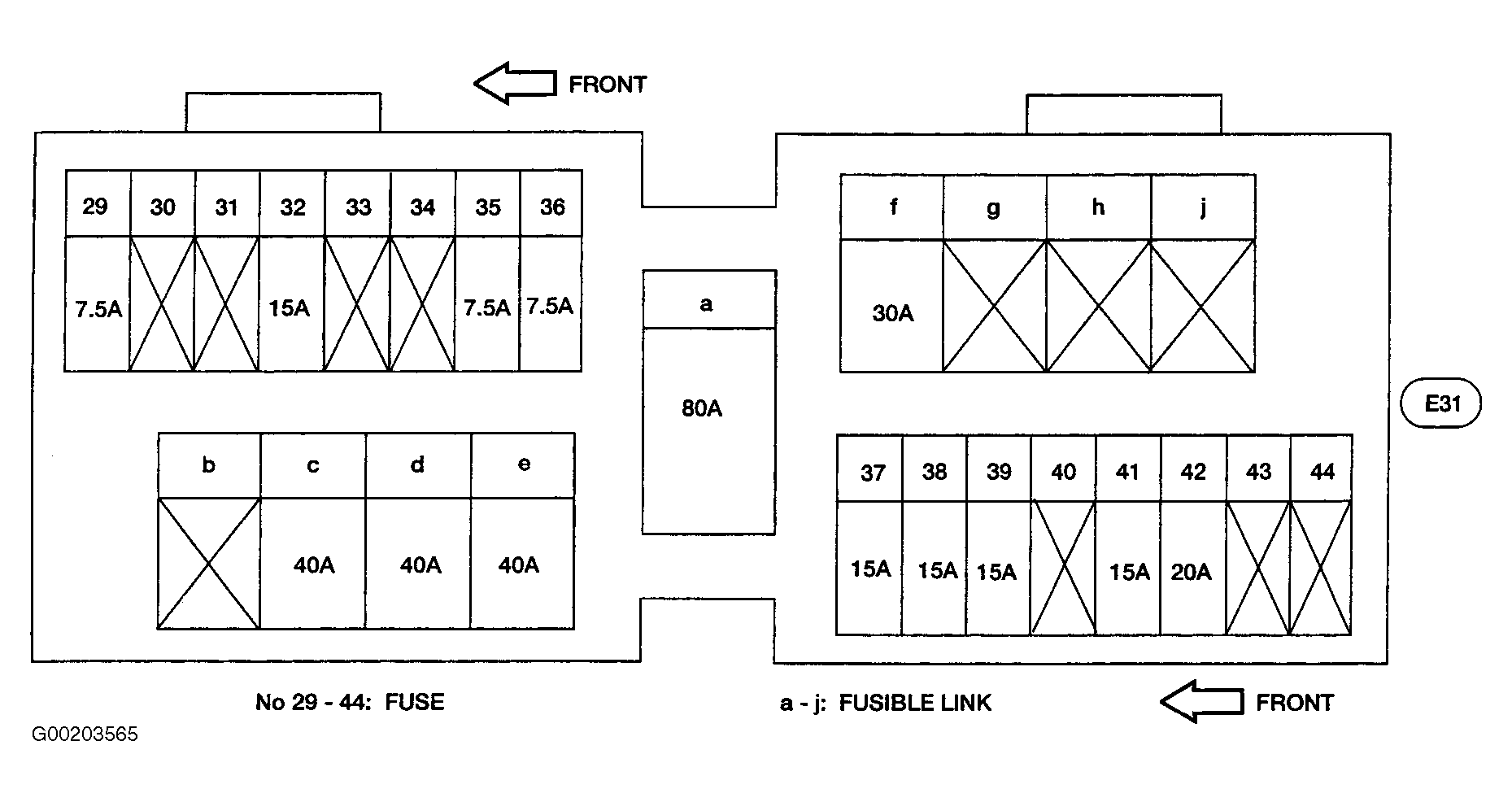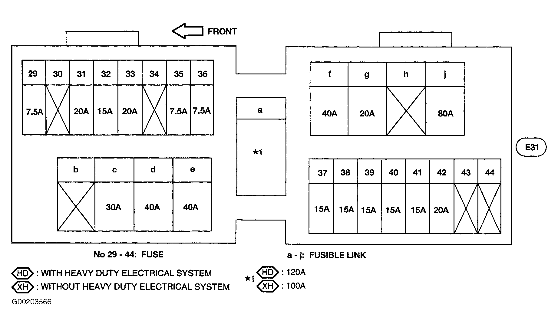 Fig 6: Identifying Fuse & Fusible Links Box Components (Frontier & Xterra 3.3L)