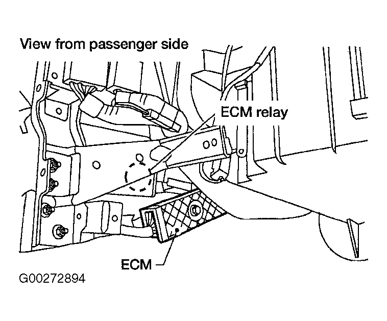 The ECM is located behind the instrument lower cover. Remove instrument lower cover. Remove ECM harness protector. See Fig 1. Remove ECM. To install, reverse removal procedure.