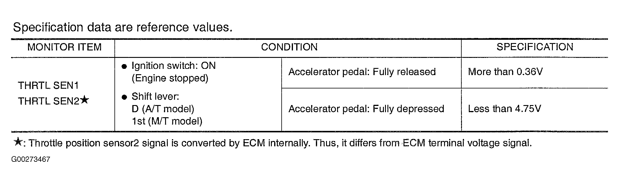 Fig 1: DTCs P0222 & P0223 CONSULT-II Reference Value In Data Monitor Mode