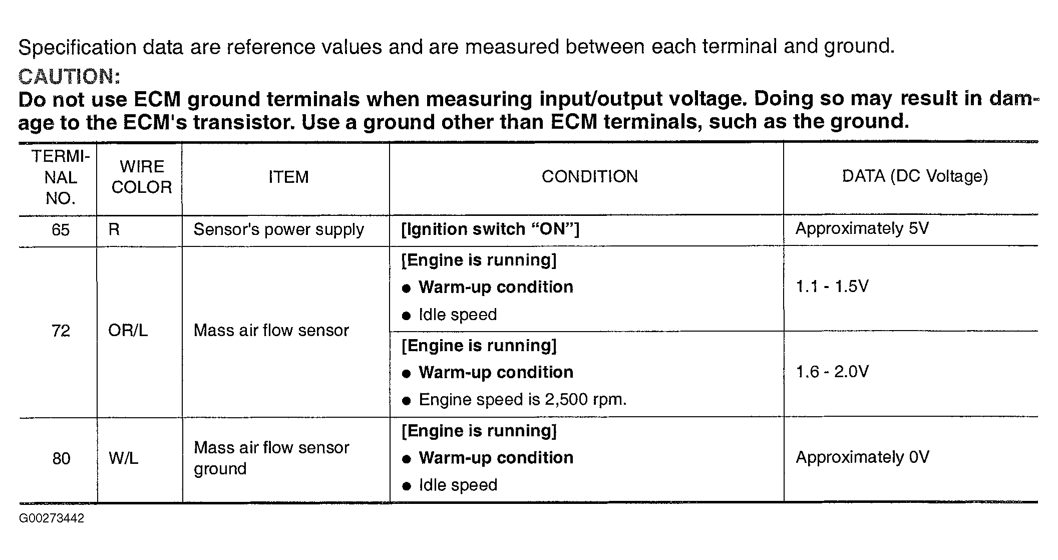 Fig 2: DTCs P0102 & P0103 MAF Sensor Circuit Terminal Identification