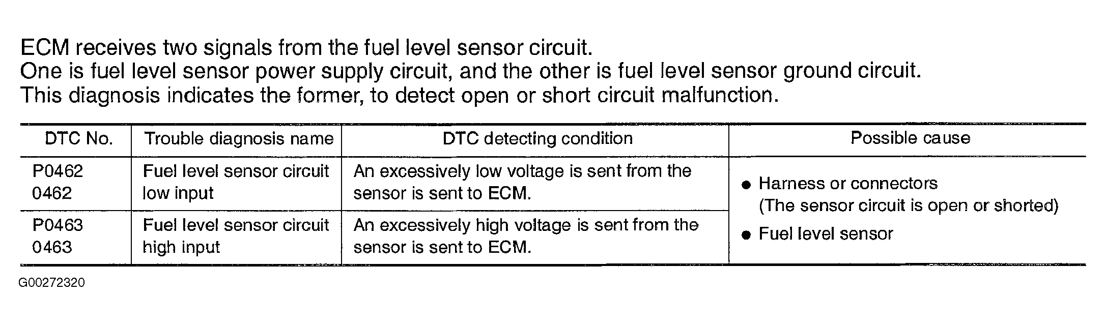 Fig 1: DTCs P0462 & P0463 On Board Diagnosis Logic