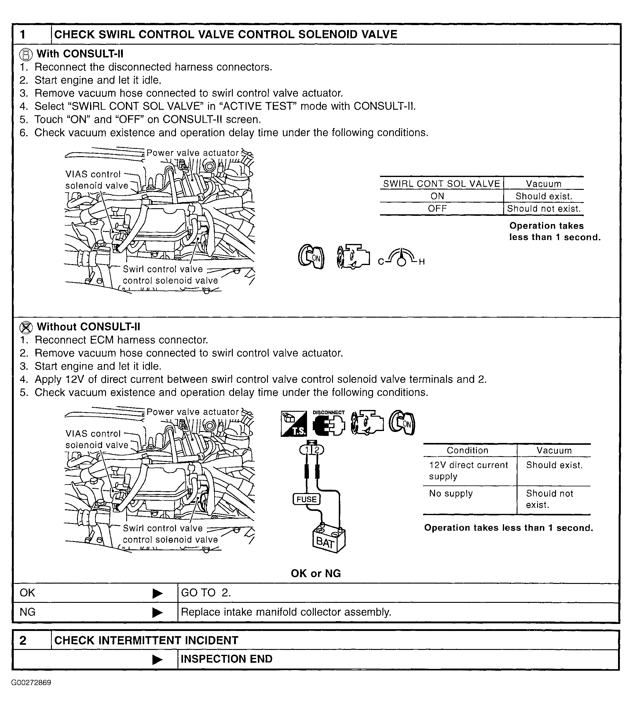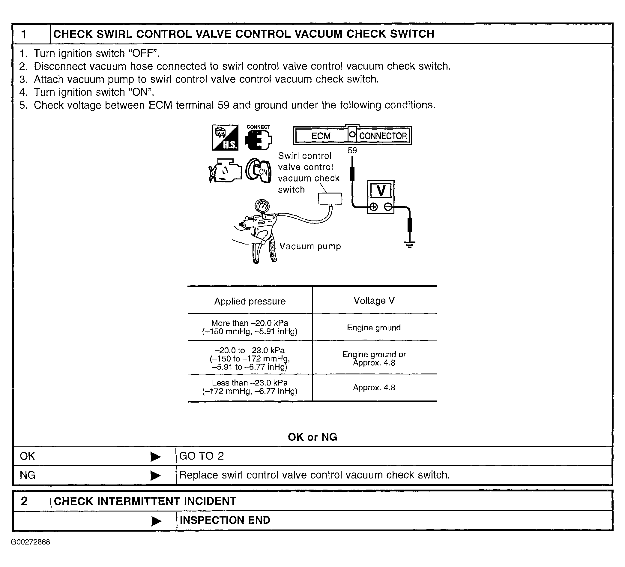 - To test swirl control valve control vacuum check switch, see Fig 1.