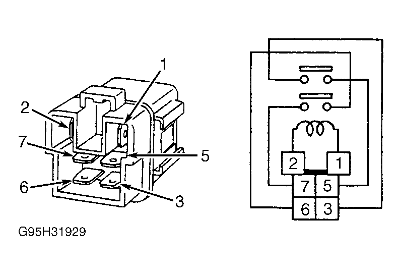 13. Working with ECM relay, apply battery voltage and ground to terminals No. 1 and 2. See Figure. When battery voltage is applied, continuity should exist between terminals No. 3, 5, 6 and 7. When battery voltage is removed, continuity should not exist. If relay tests okay, go to next step. Replace relay, if test values are not as specified.