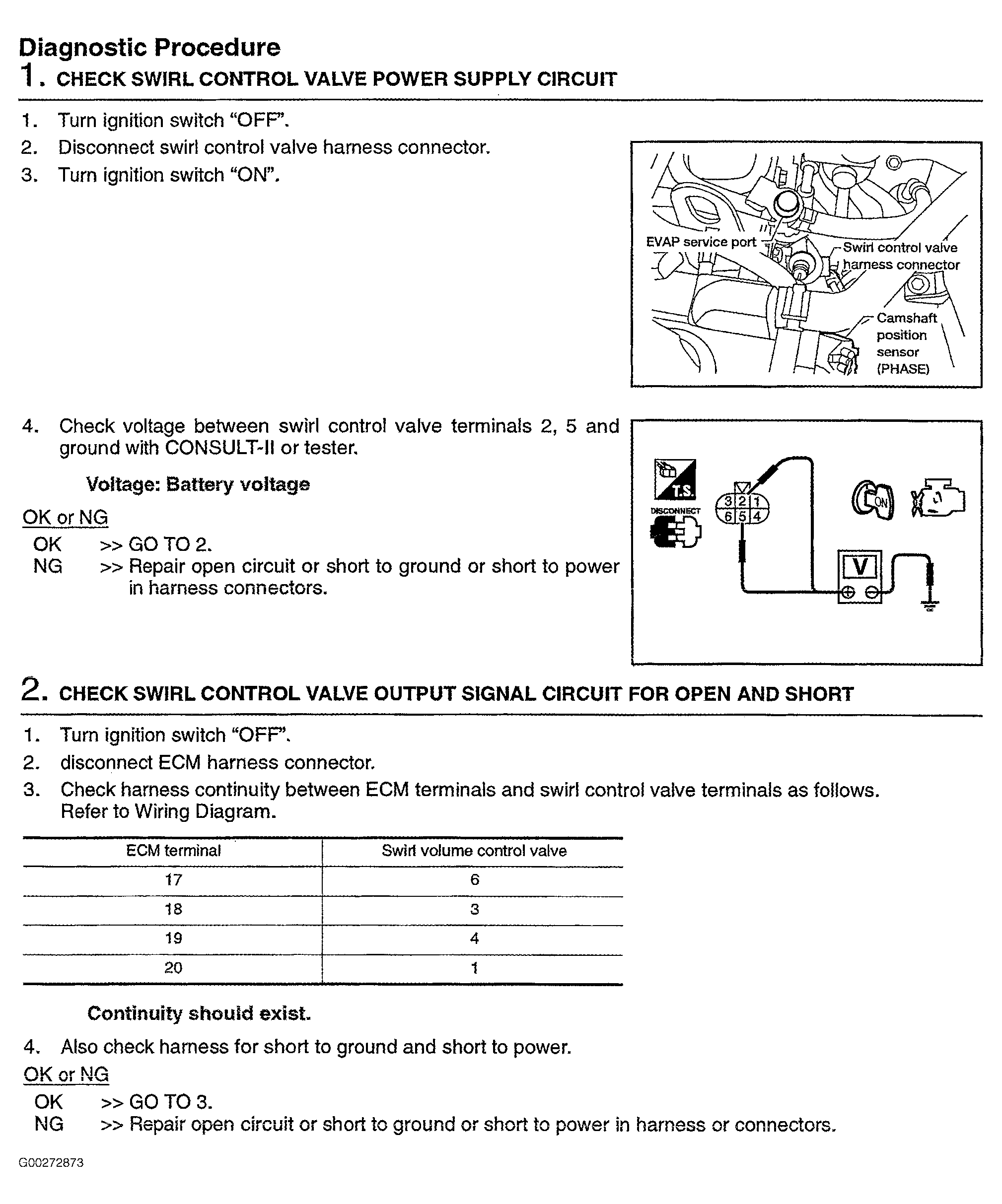 For circuit wiring diagram, see Fig 1-Fig 2 . For swirl control valve system and component test procedure, see Fig 3-Fig 6 .