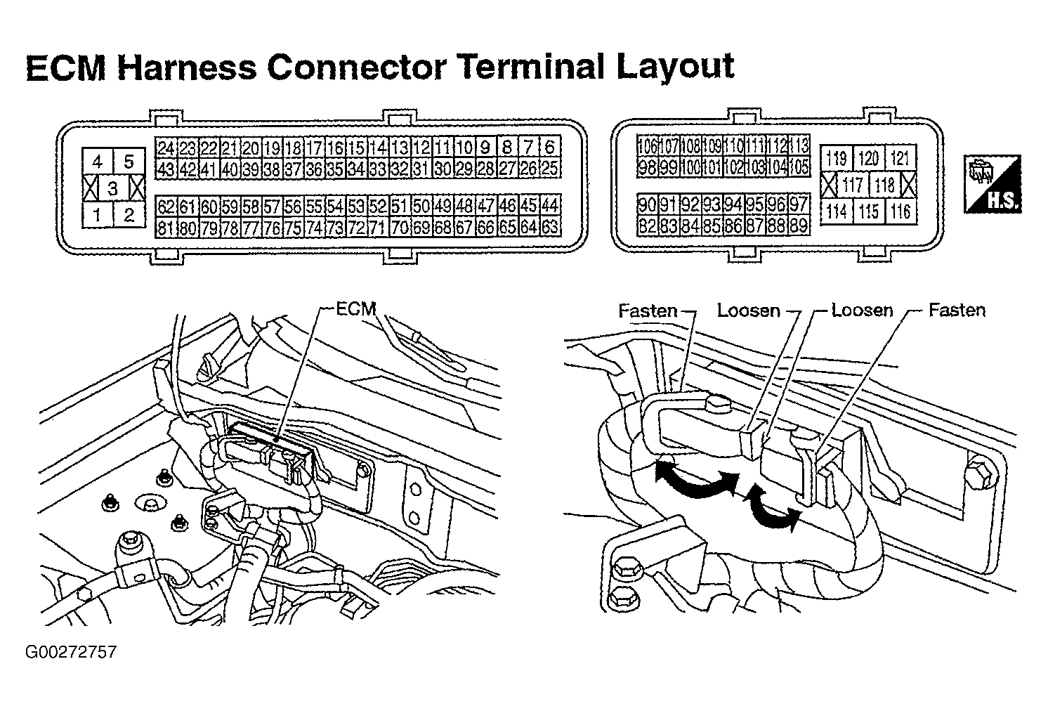 For engine control system component locations, see Figure-Figure . For ECM location, connector and terminal view, see Fig 7. For removal and installation of components, see appropriate REMOVAL & INSTALLATION article.