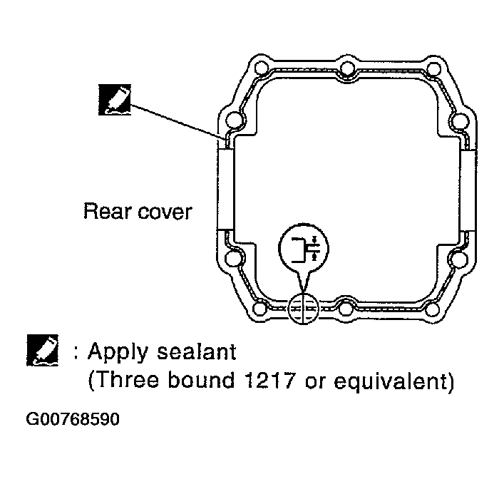 - Apply a continuous bead of sealant around the gear carrier mating surface on the rear cover as shown in Fig 6