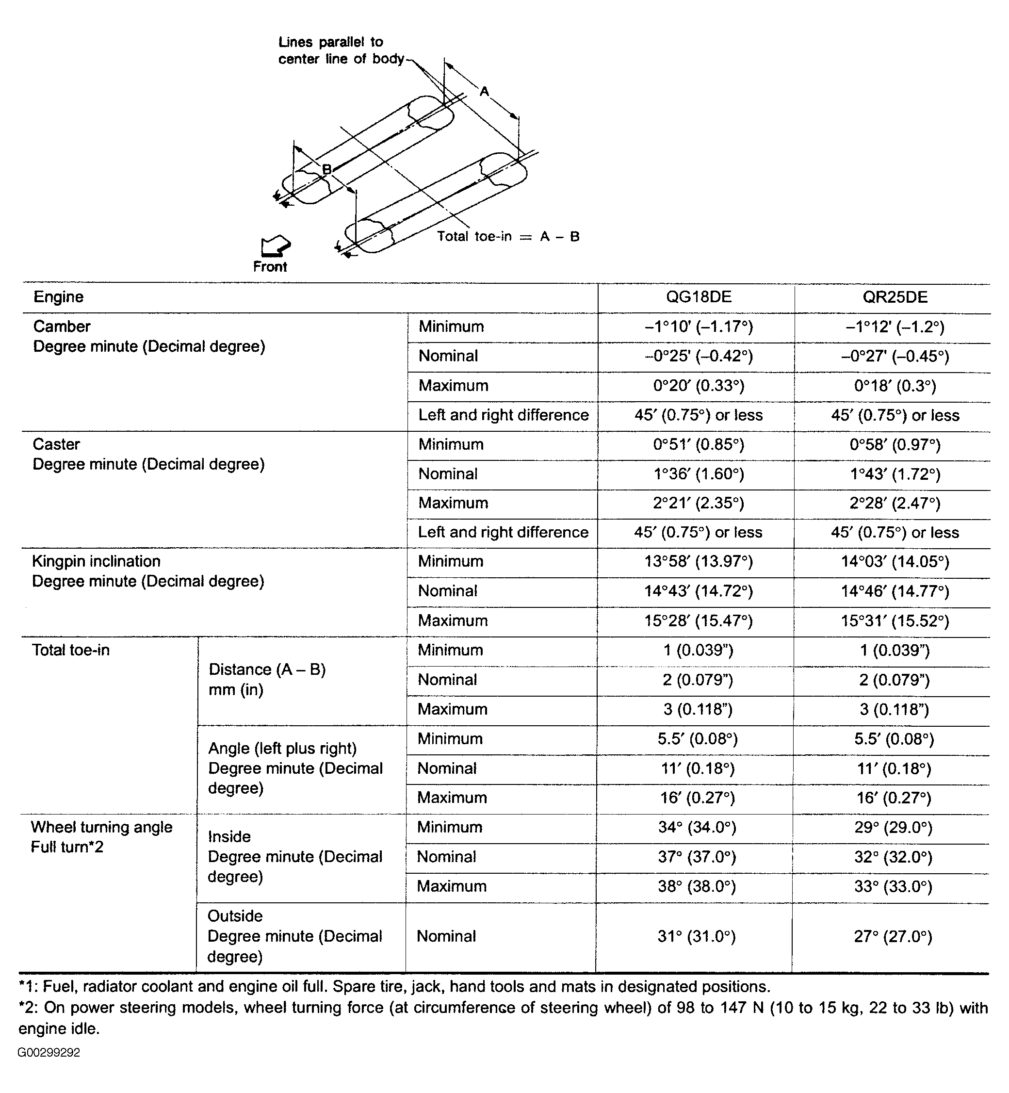 Home >> Nissan-Datsun >> 2003 >> Sentra SE-R Spec V >> Repair and Diagnosis >> Suspension >> Wheel Alignment >> Specifications & Procedures >> Specifications