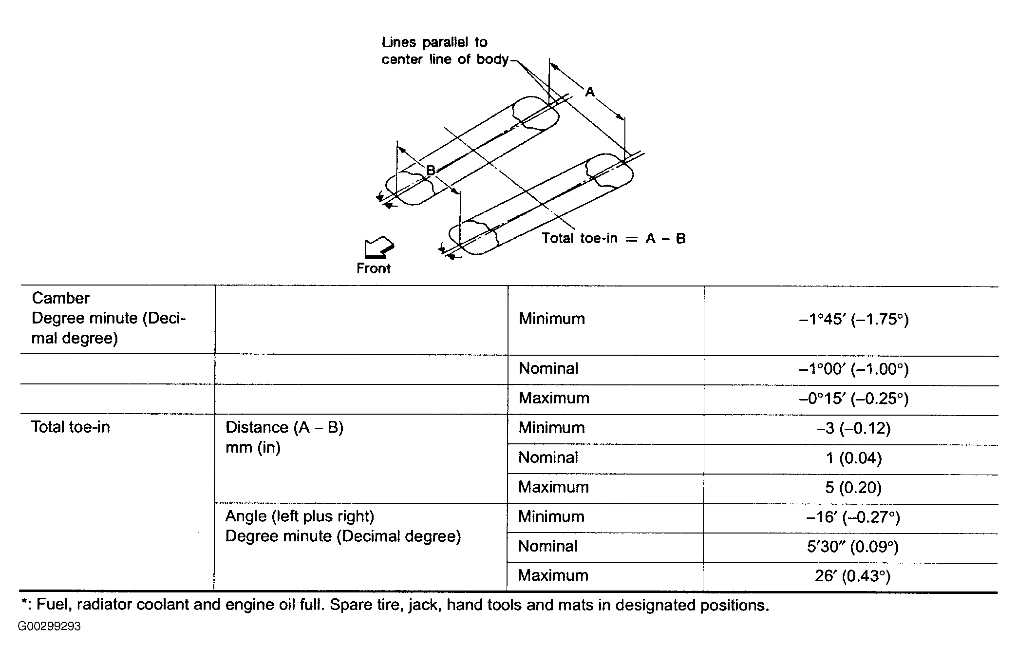 Fig 1: Front Wheel Alignment Specifications (Sentra)