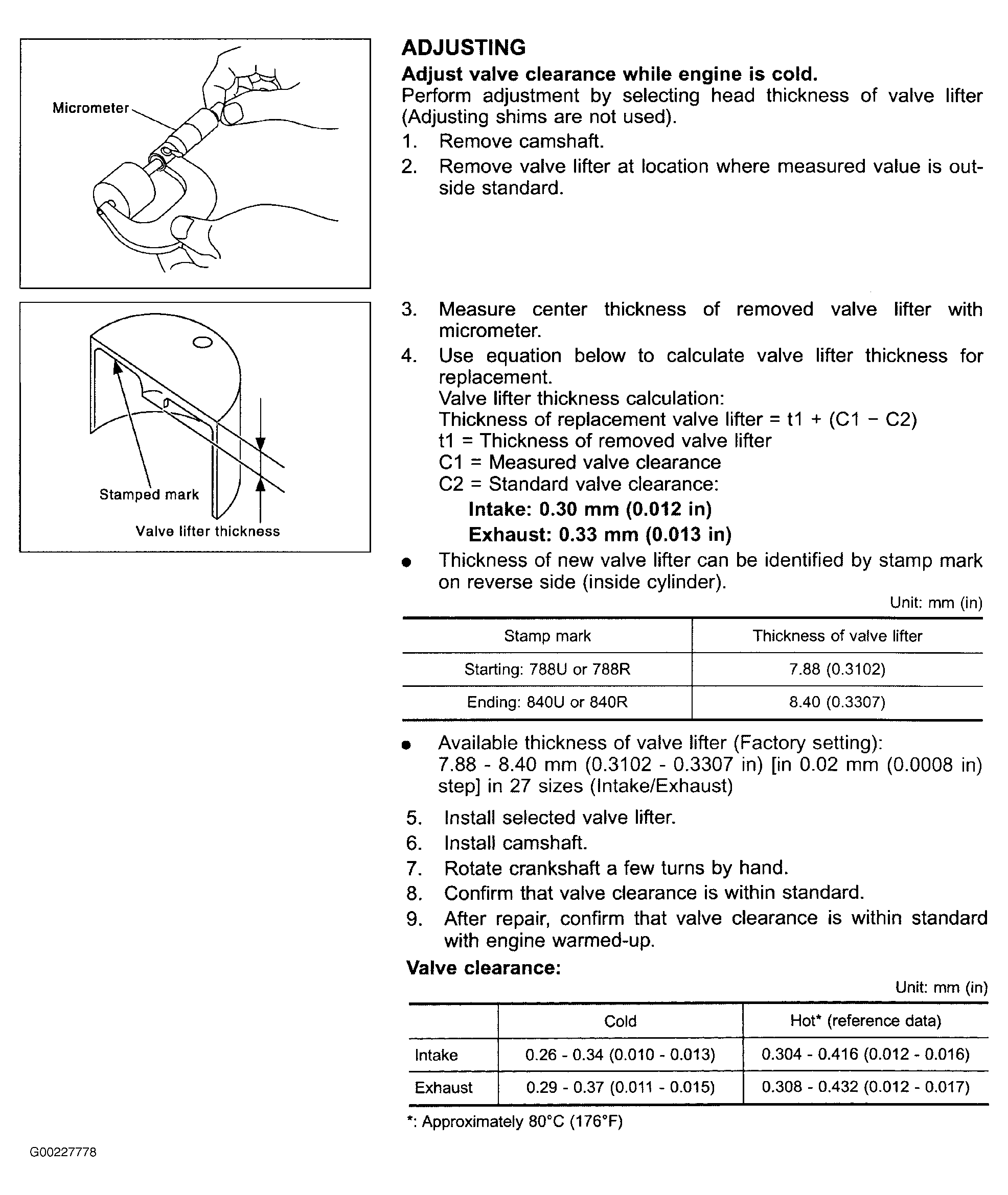 For valve clearance inspection, see