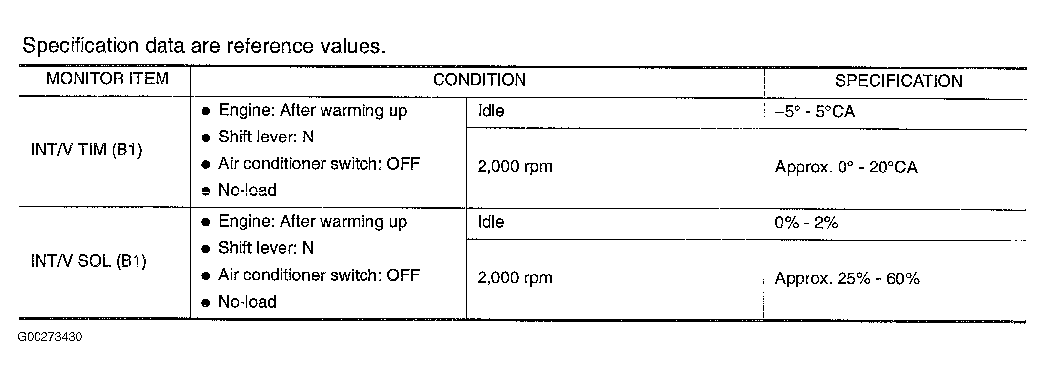 Fig 1: DTC P0011 CONSULT-II Reference Value In Data Monitor Mode