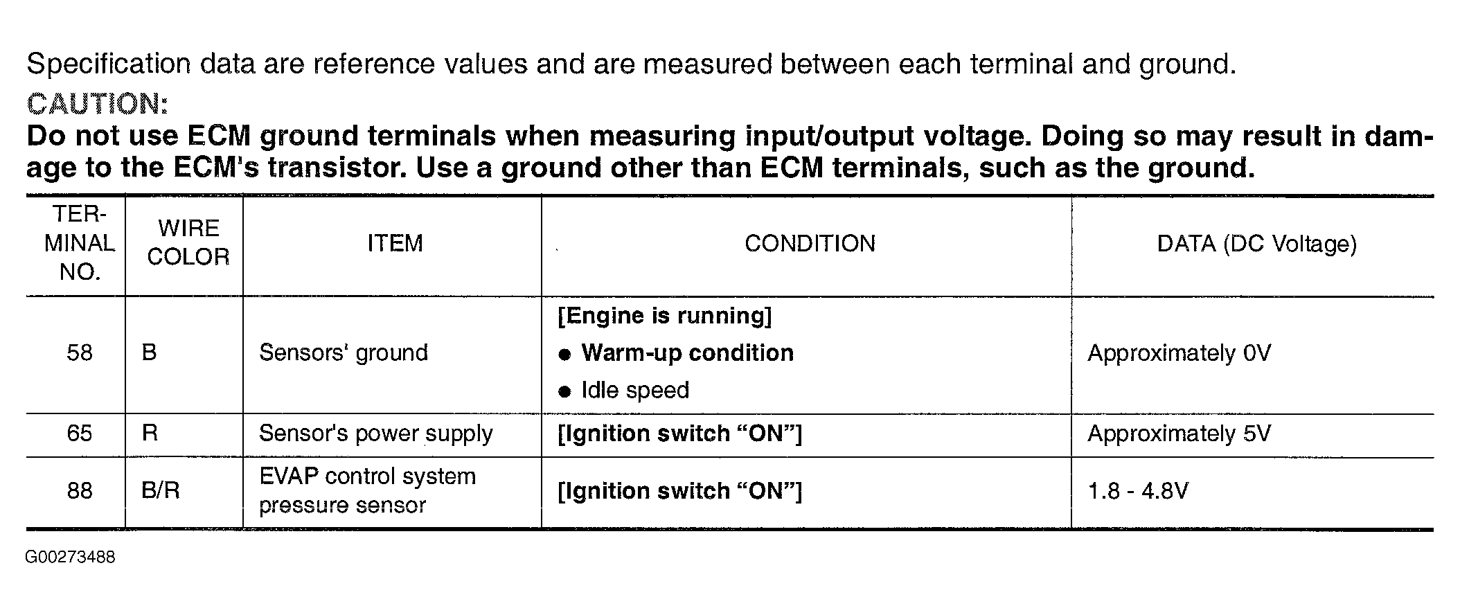 Fig 2: DTC P0453 EVAP Control System Pressure Sensor Circuit Terminal Identification