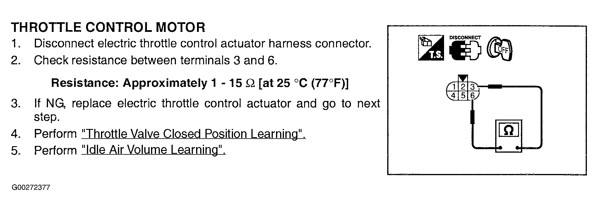 Fig 2: DTC P1122 Component Inspection (Throttle Control Motor)