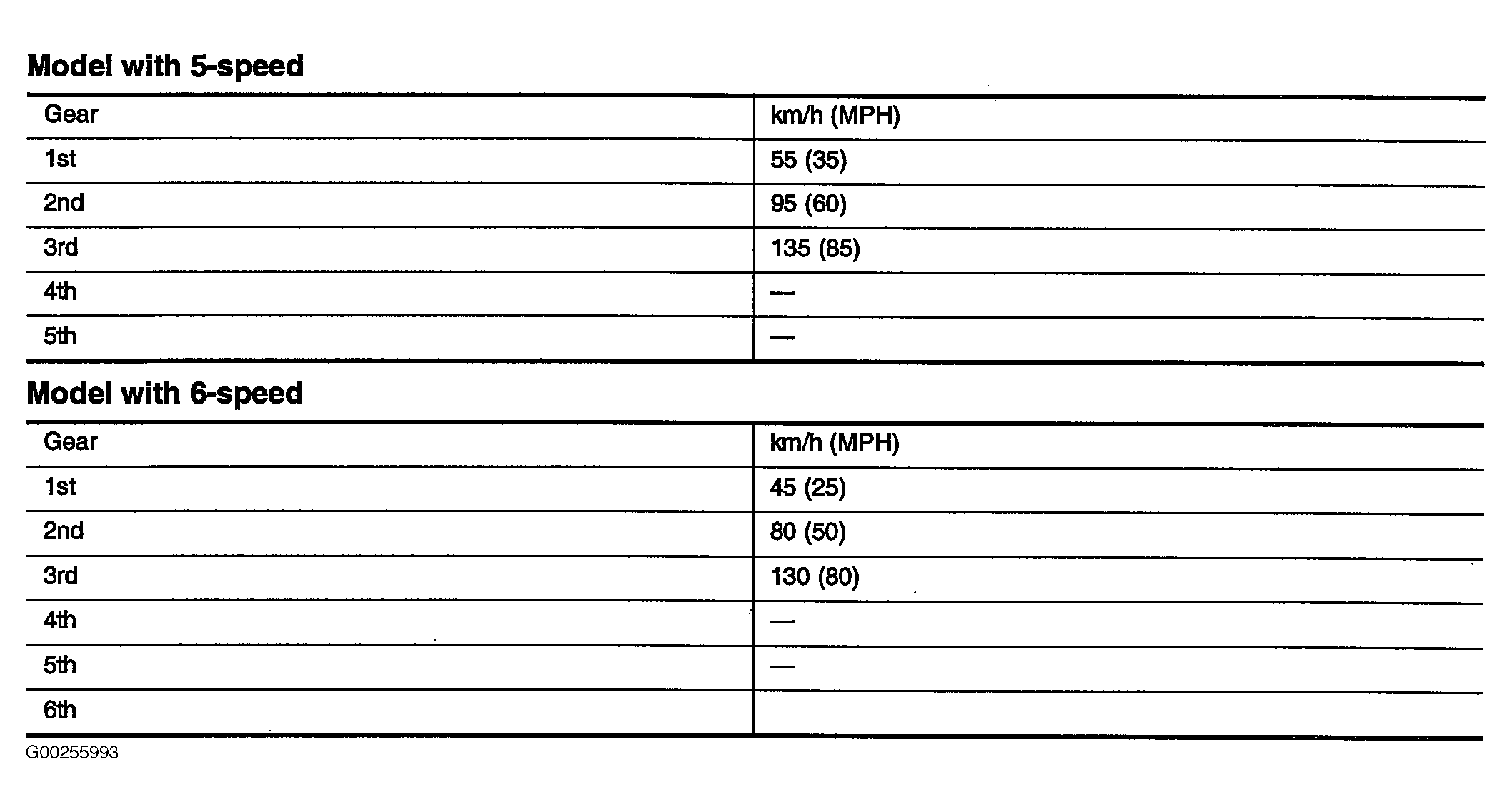 Fig 3: Suggested Upshift Speeds For M/T Models