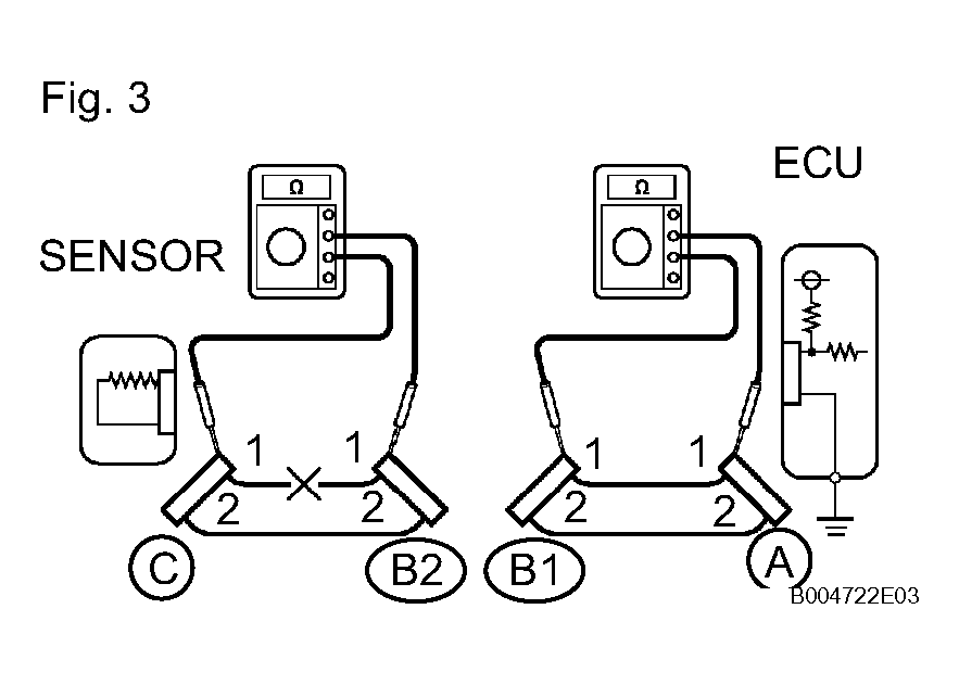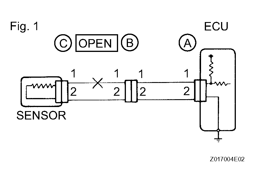 - For an open circuit in the wire harness in Fig 6, check the resistance or voltage, as described below.