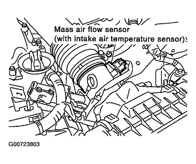 - Disconnect mass air flow sensor harness connector. See Figure. Then restart and run engine for at least 5 seconds at idle speed.