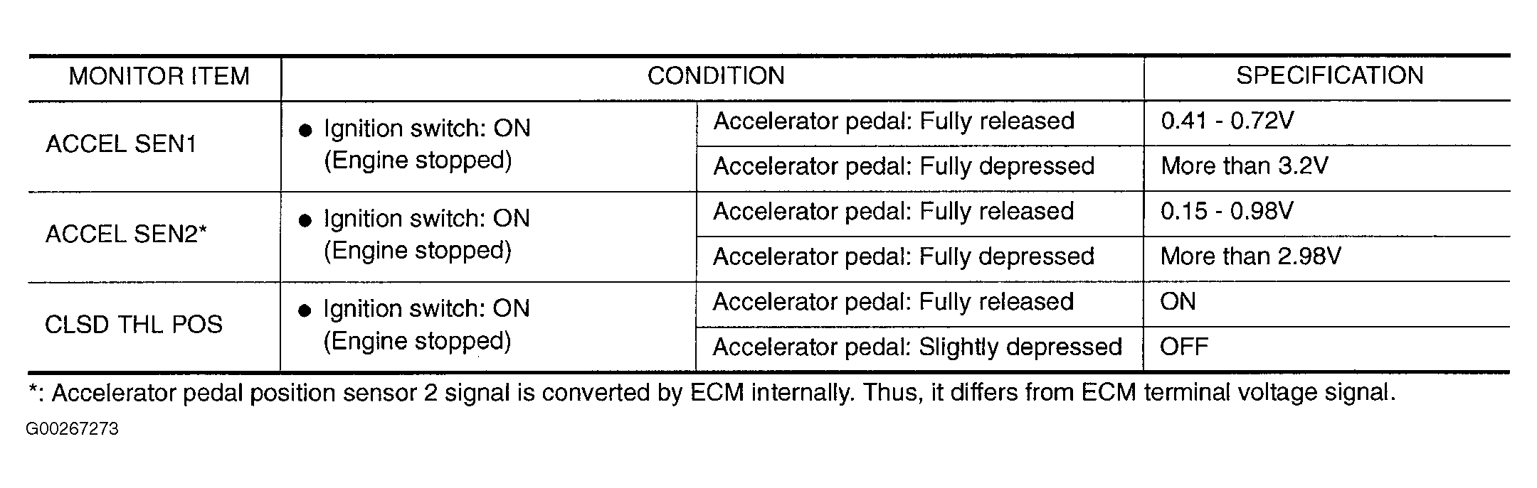 Fig 1: DTCs P0226, P0227, P0228, P1227 & P1228 Data Monitor Mode Reference Values