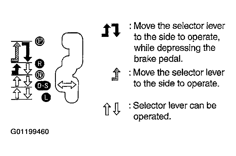 - Make sure selector lever can be shifted to other than P position when brake pedal is depressed. Also make sure selector lever can be shifted from P position only when brake pedal is depressed.