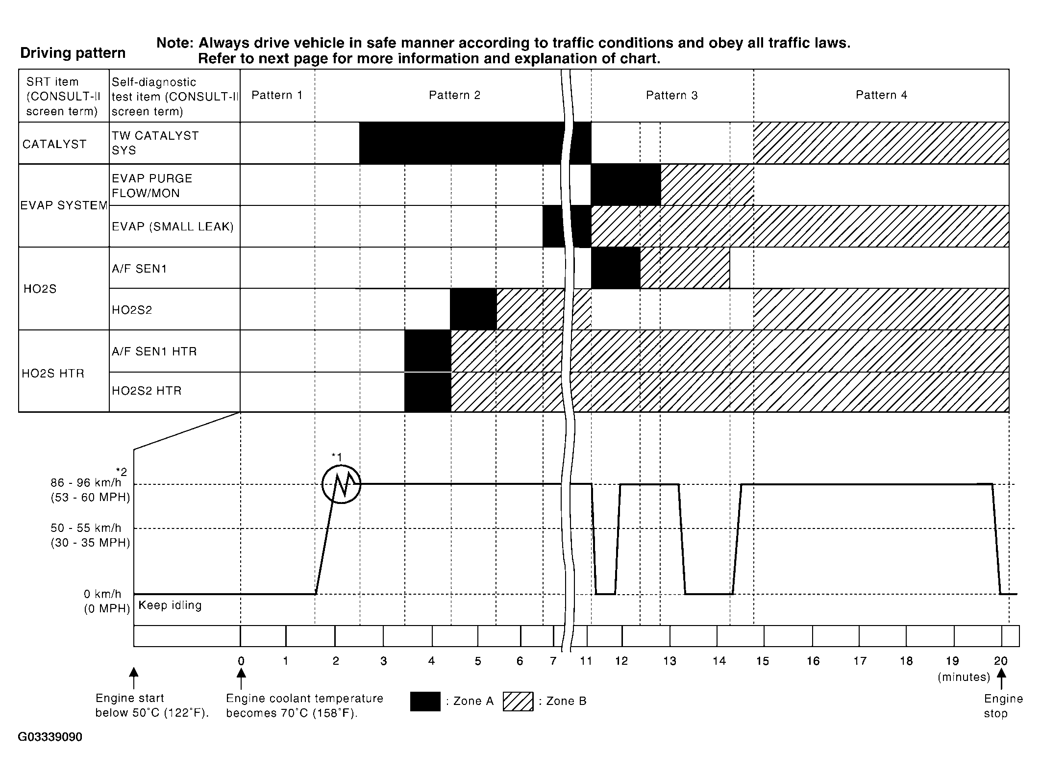 To set all SRT codes, self-diagnosis for the items indicated above must be performed one or more times. Each diagnosis may require a long period of actual driving under various conditions.