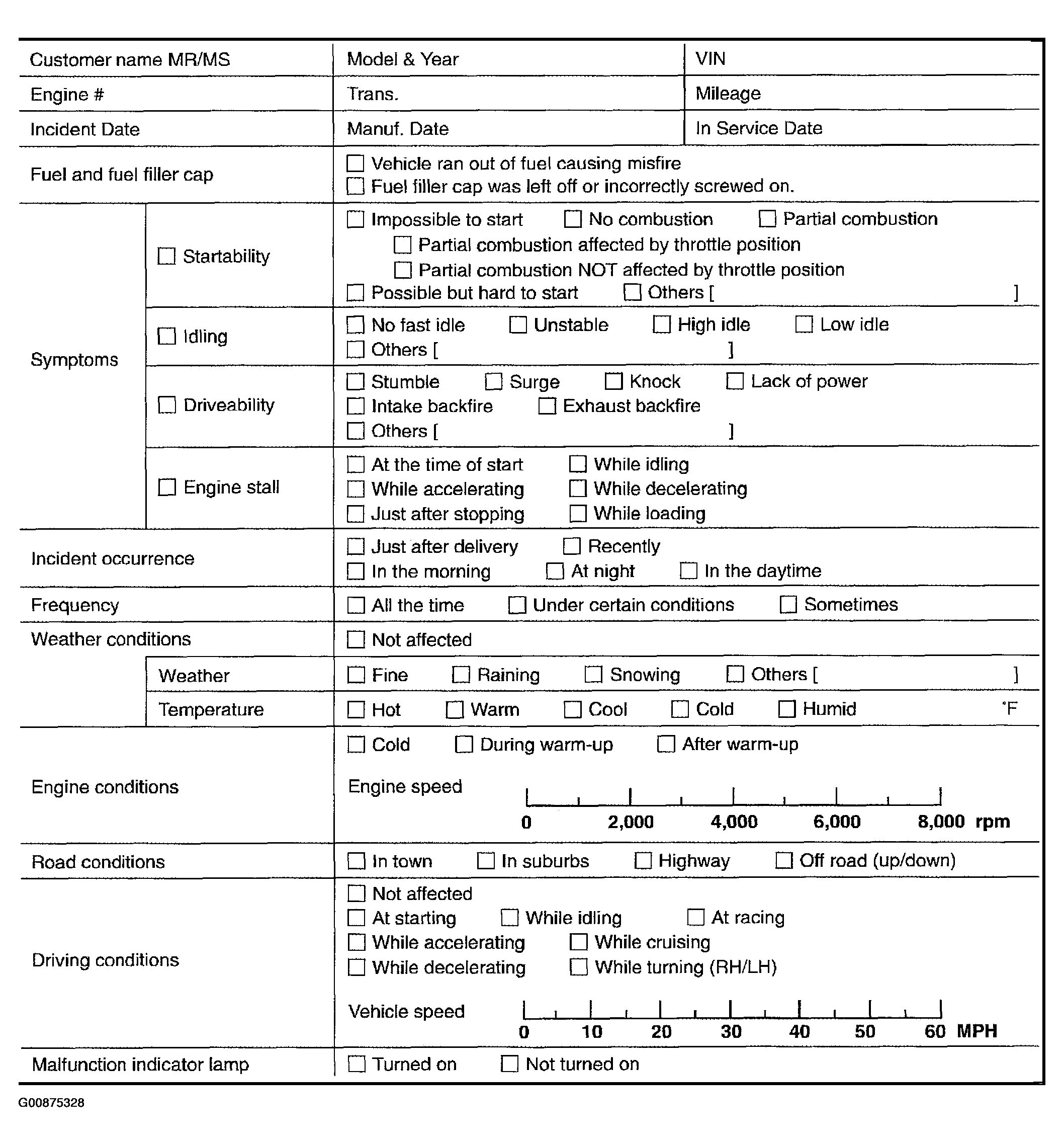 Before undertaking actual checks, take a few minutes to talk with a customer who approaches with a driveability complaint. the customer can supply good information about such incidents, especially intermittent ones. Find out what symptoms are present and under what conditions they occur. A Diagnostic Worksheet like the example on Figure should be used.