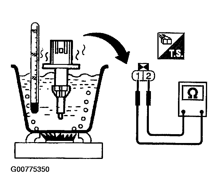1. Check resistance between engine coolant temperature sensor terminals 1 and 2 as shown in Fig 1 .