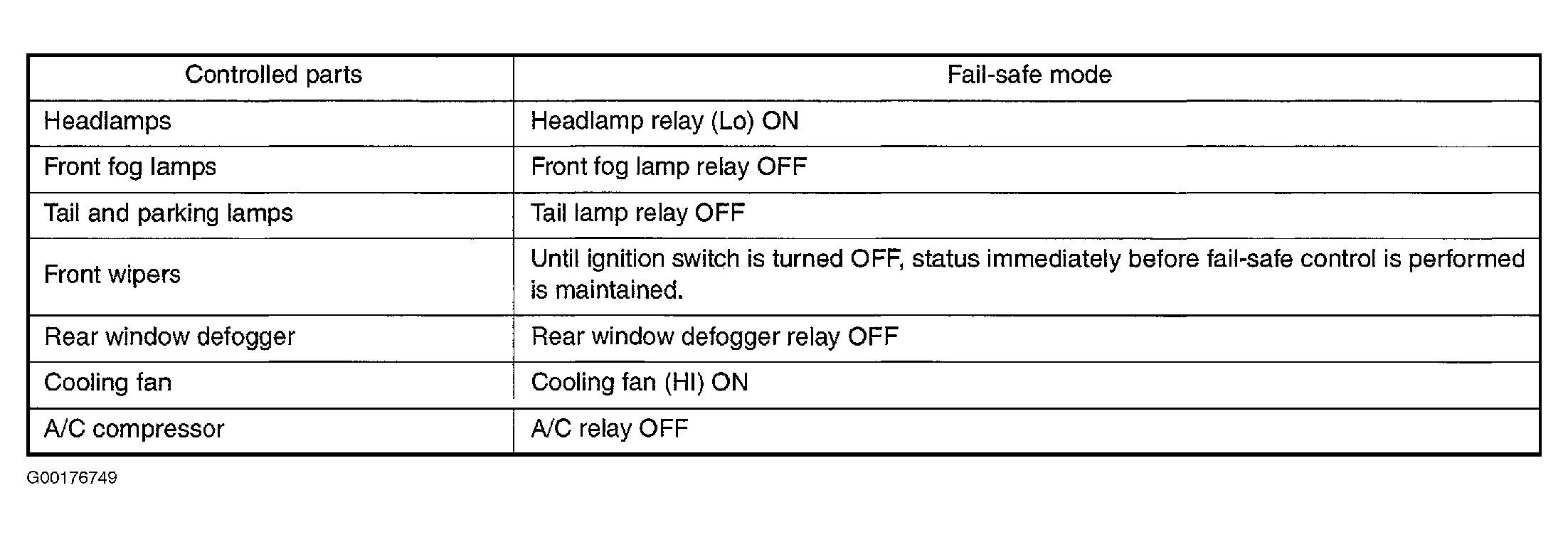 • Operation of control parts by IPDM during fail-safe mode is shown in Fig 1