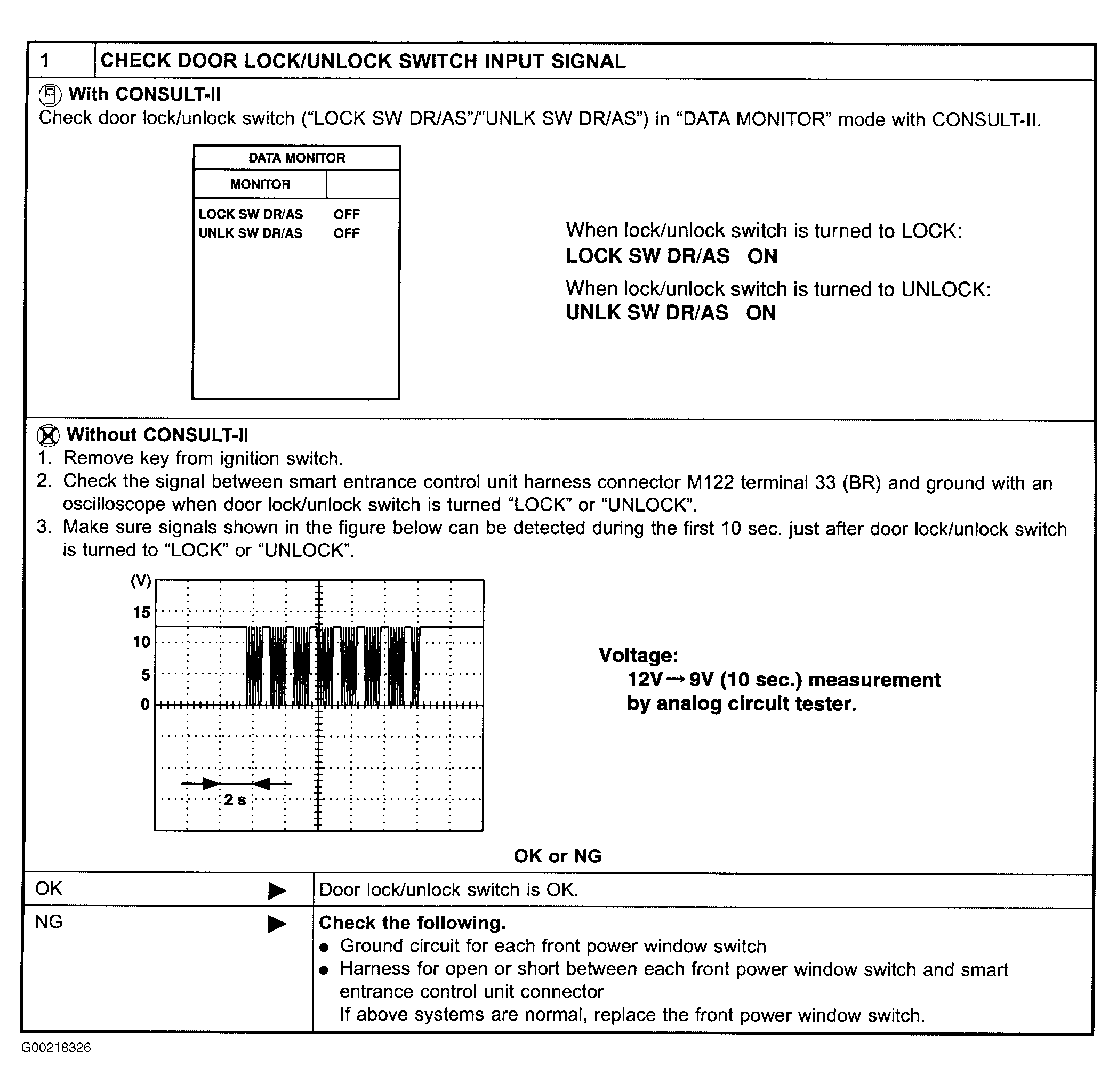 Home >> Nissan-Datsun >> 2004 >> Sentra SE-R Spec V >> Repair and Diagnosis >> External Pages >> Different car >> Section 171 (Remote Keyless Entry System) >> System Tests >> Left Door Lock/Unlock Switch Test