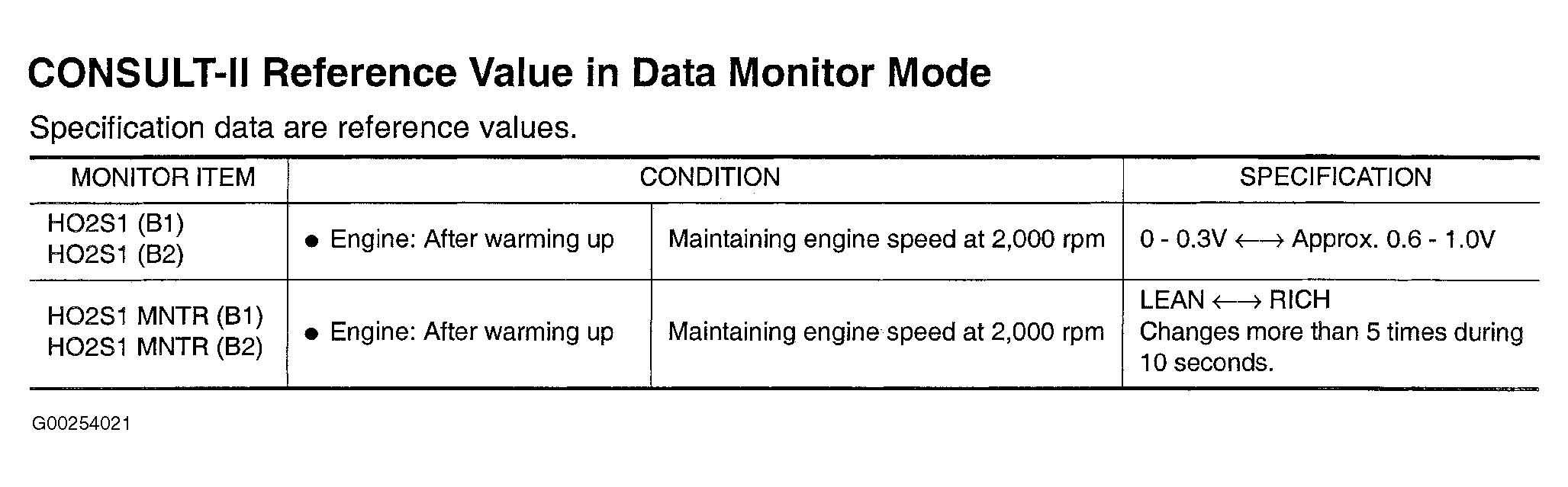 Fig 1: CONSULT-II Reference Value In Data Monitor Mode