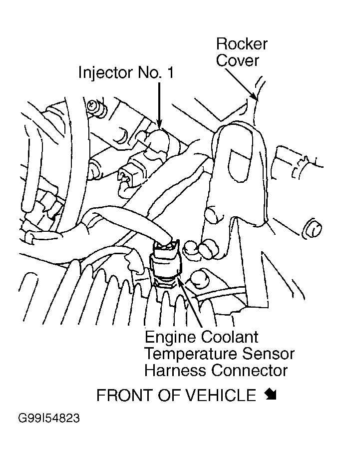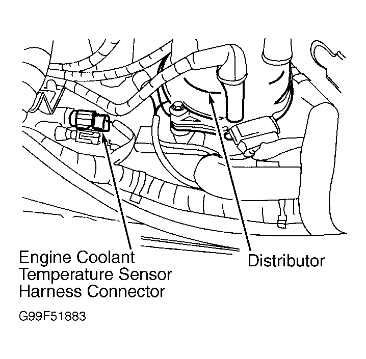 - Turn ignition off. Disconnect ECT sensor harness connector. See Fig 1 or Fig 2 . Turn ignition on. Measure voltage between ground and ECT sensor harness connector terminal No. 1 (Light Green/Red wire). If voltage is about 5 volts, go to next step. If voltage is not about 5 volts, repair open or short between ECM and ECT sensor.