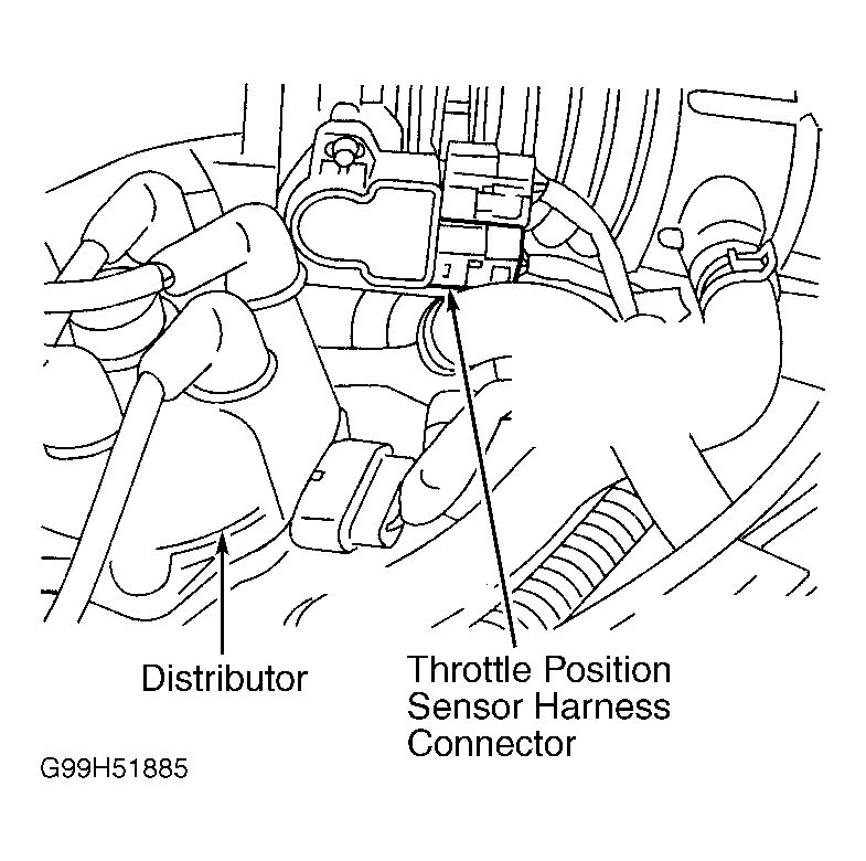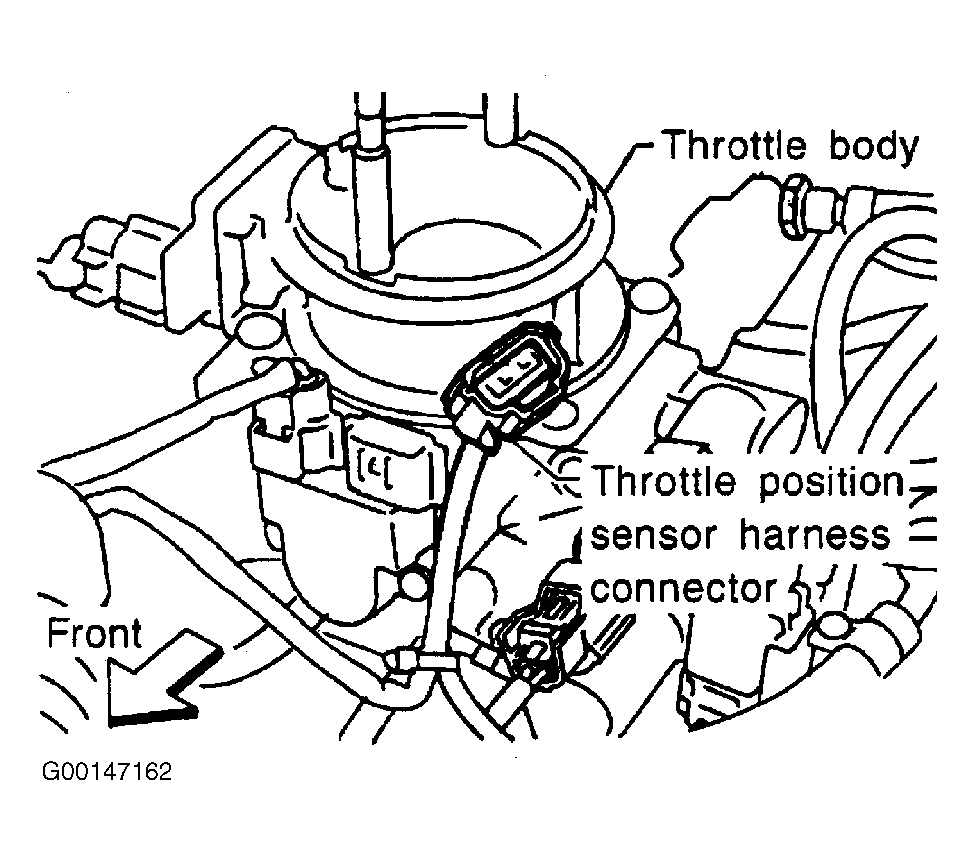 - Turn ignition off. Loosen and retighten engine ground bolts. See Figure or Figure . Disconnect TP sensor harness connector. See Fig 1 or Fig 2 . Turn ignition on. On 2.4L models, go to next step. On 3.3L models, go to step 5 .