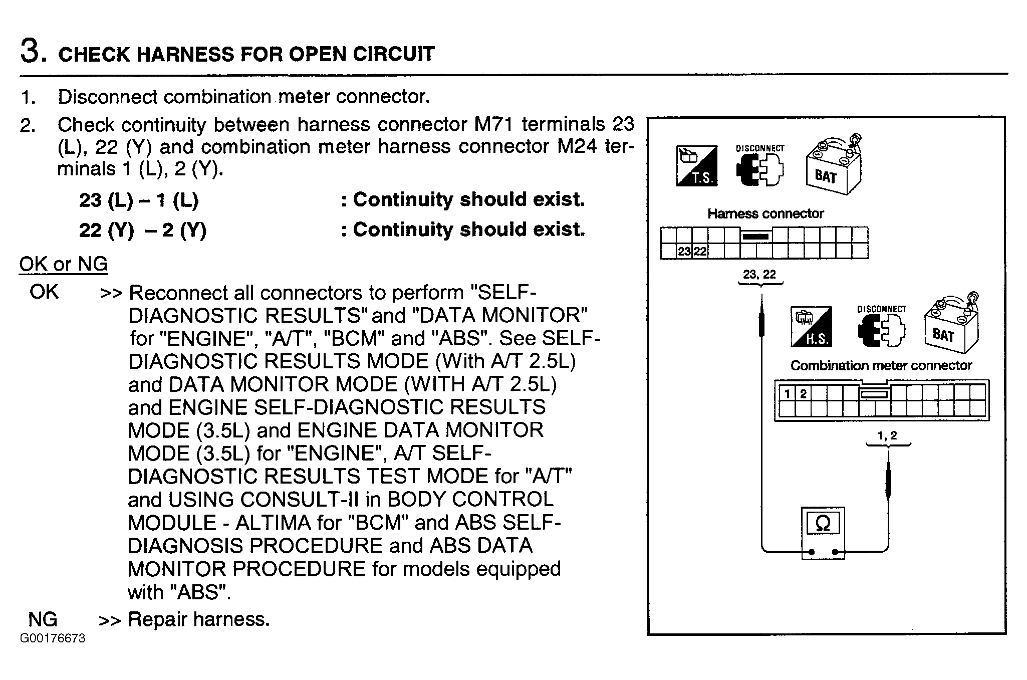 For circuit check between TCM and combination meter (with TCS & A/T), see Fig 1 -Fig 3 .