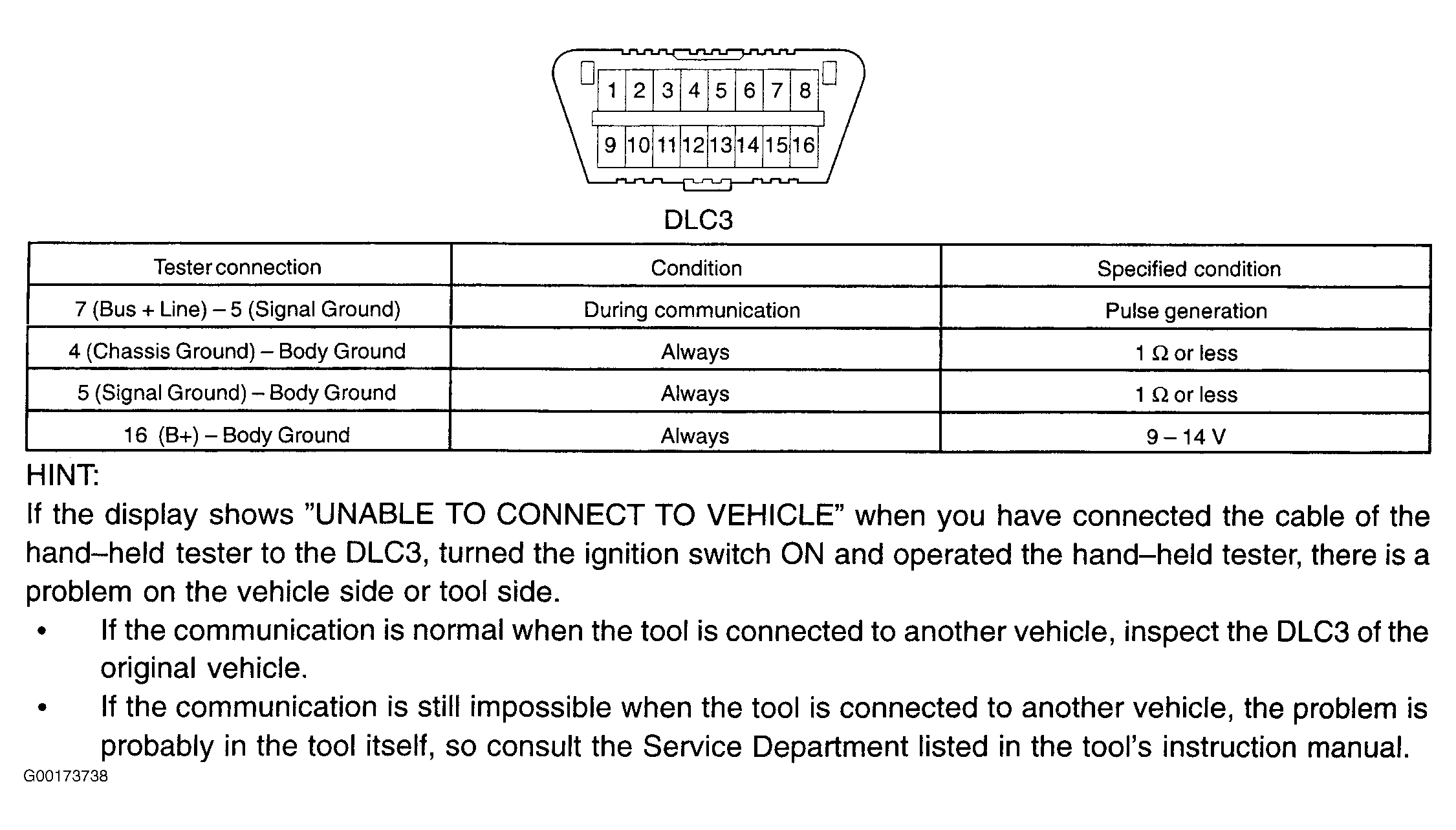 - Connect scan tool to DLC3 located under left side of instrument panel. See Fig 2. If scan tool cannot communicate with DLC3 diagnostic line when ignition is turned on and scan tool is operated, there is a problem either on vehicle side or tool side of the link. If communication can be established when scan tool is connected to another vehicle, inspect diagnostic circuit (TC line) of DLC3 circuit in original vehicle. See COMPUTER DATA LINES under SYSTEM WIRING DIAGRAMS article in ELECTRICAL. The vehicle's ECM uses ISO 14230 for communication. The terminal arrangement of the DLC3 complies with SAE J1962 and matches the ISO 14230 format. See Fig 1. If communication is still impossible when scan tool is connected to another vehicle, problem is probably in scan tool itself. Consult the Service Department listed in tool's instruction manual. When communication is established, go to next step.