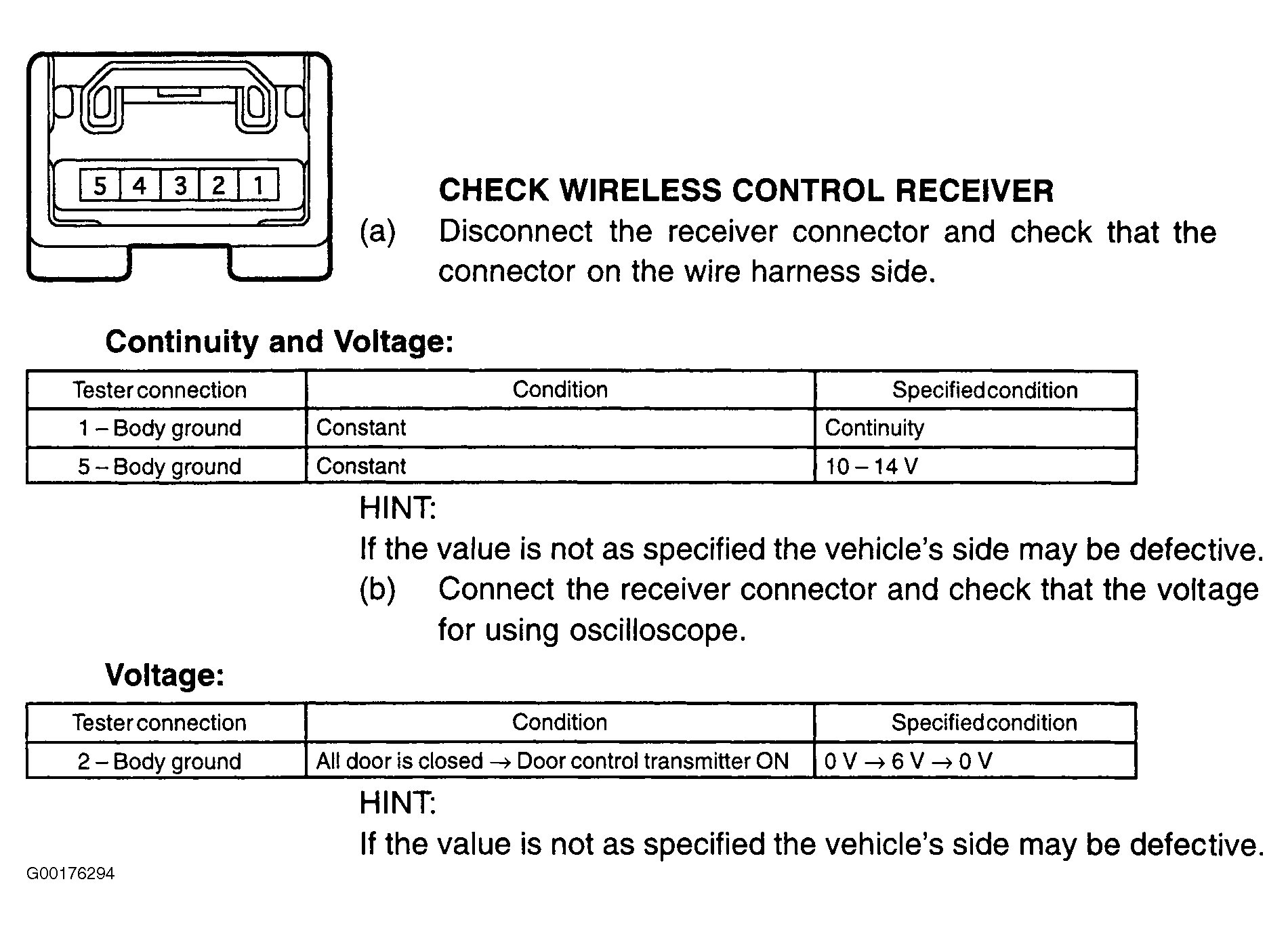 Check the wireless (door) control receiver. See COMPONENT LOCATIONS table. See Fig 1.